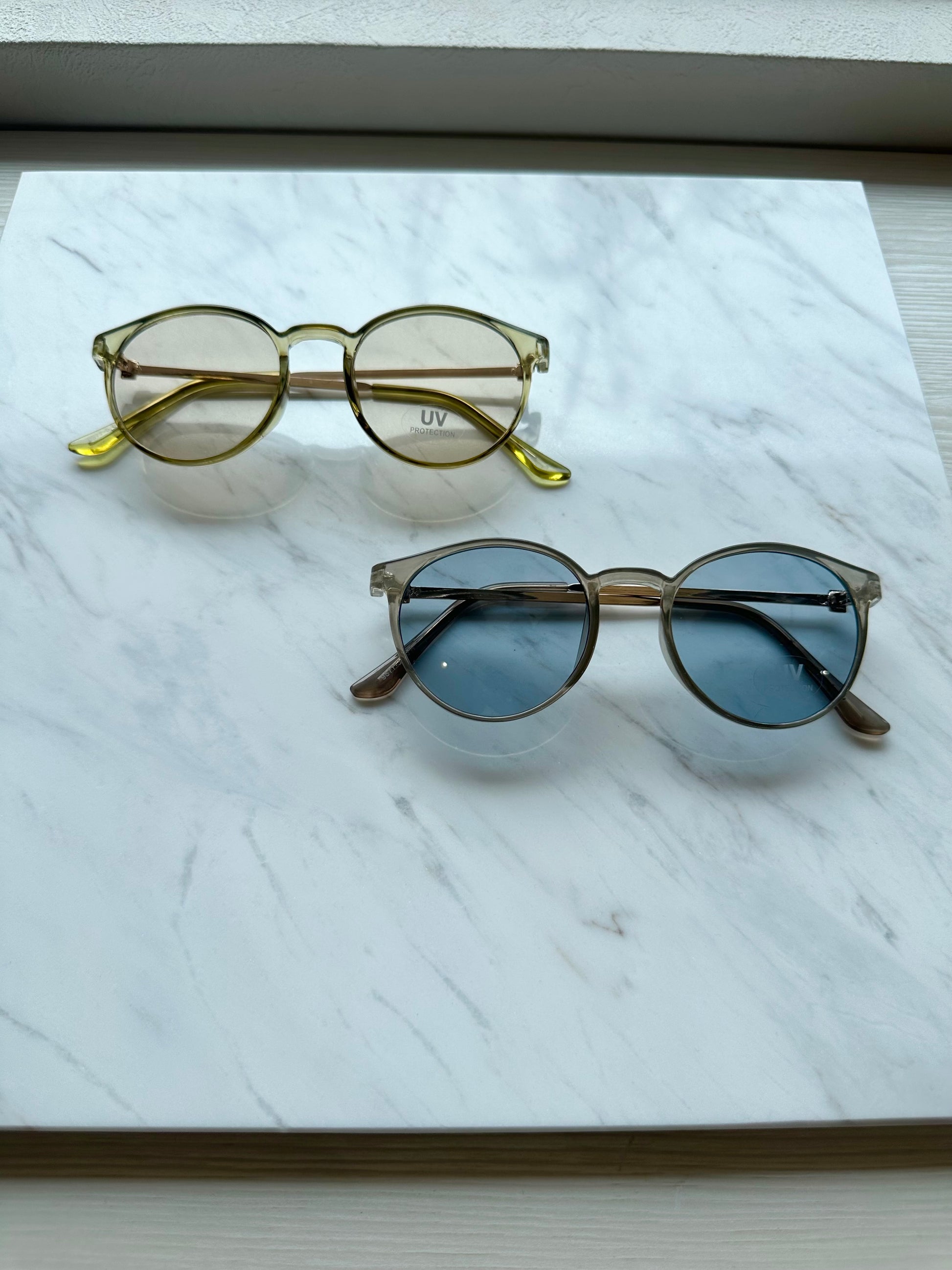細めのフレームに淡いレンズカラーが魅力のサングラス