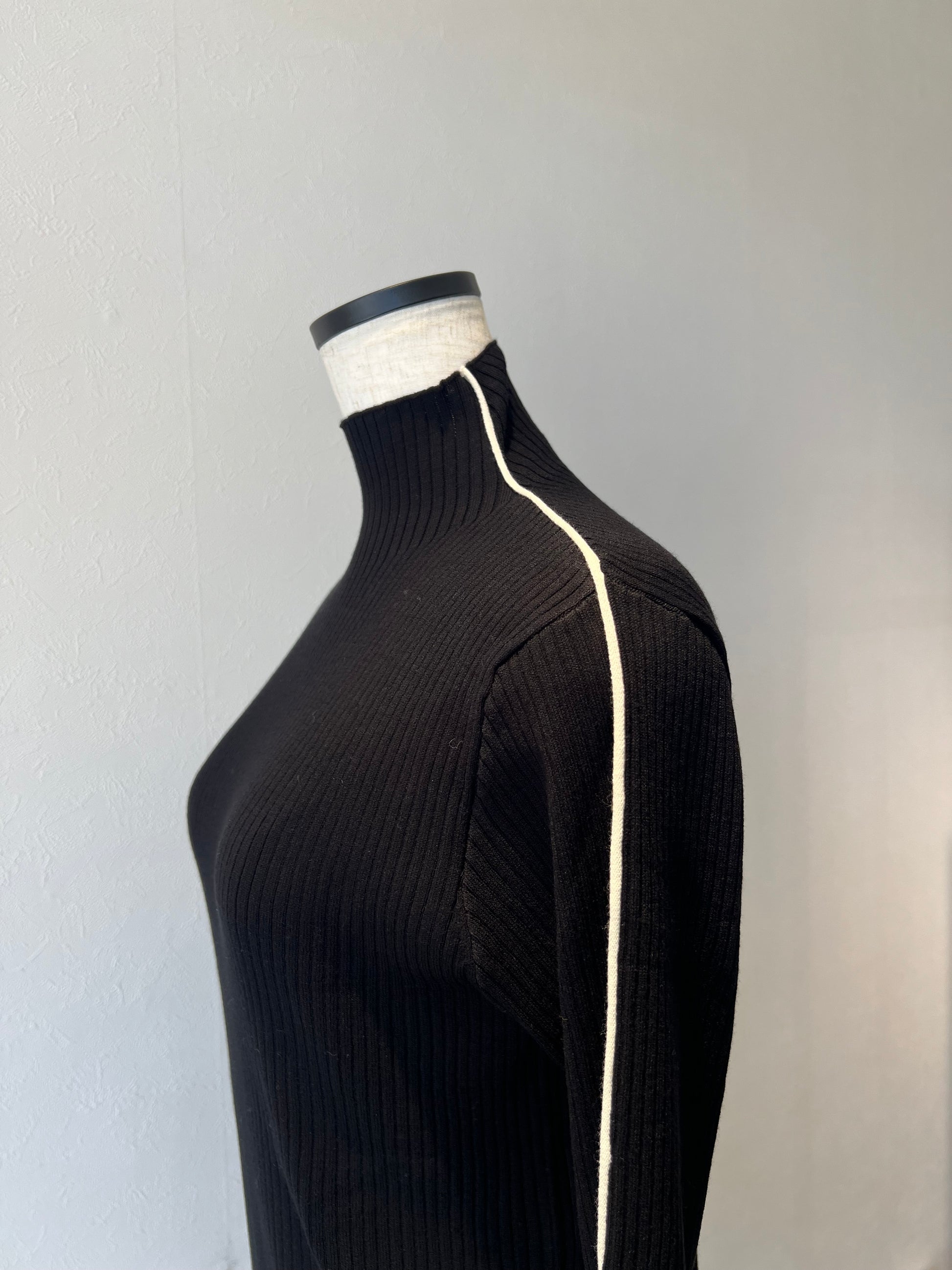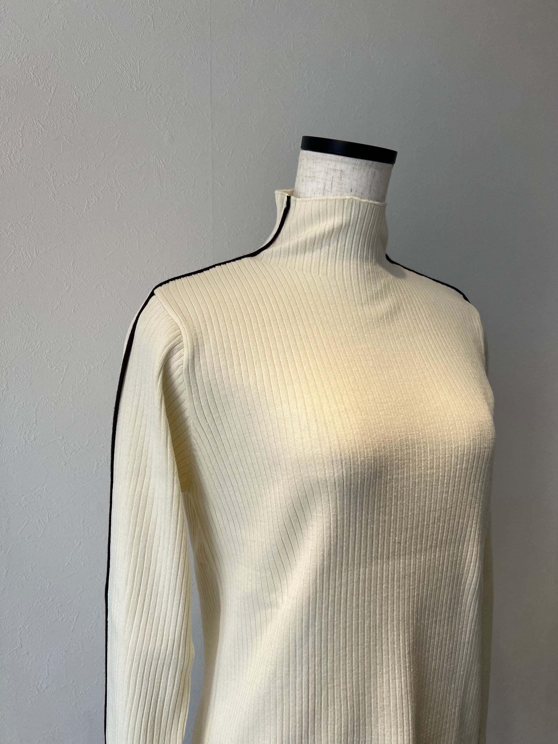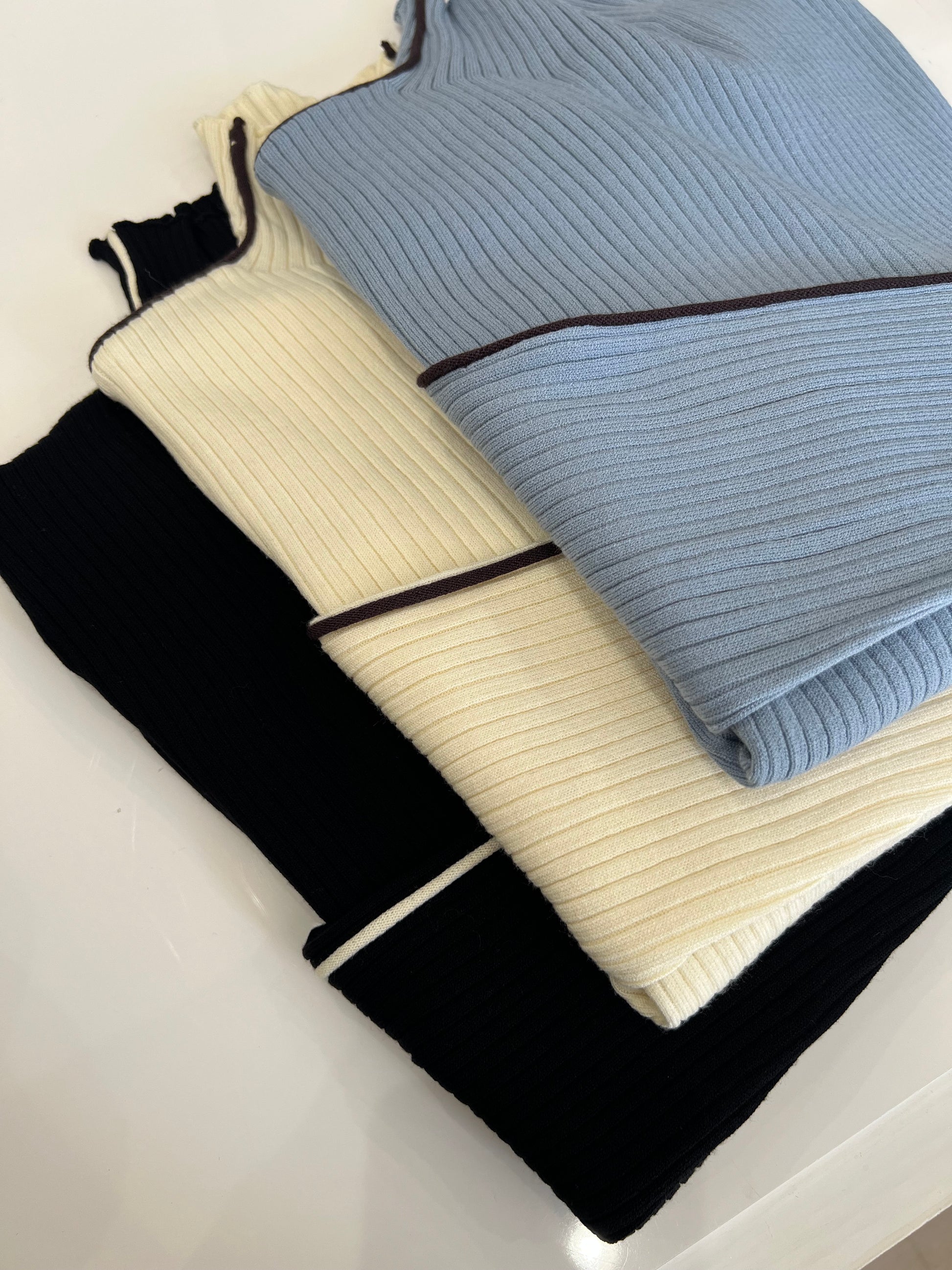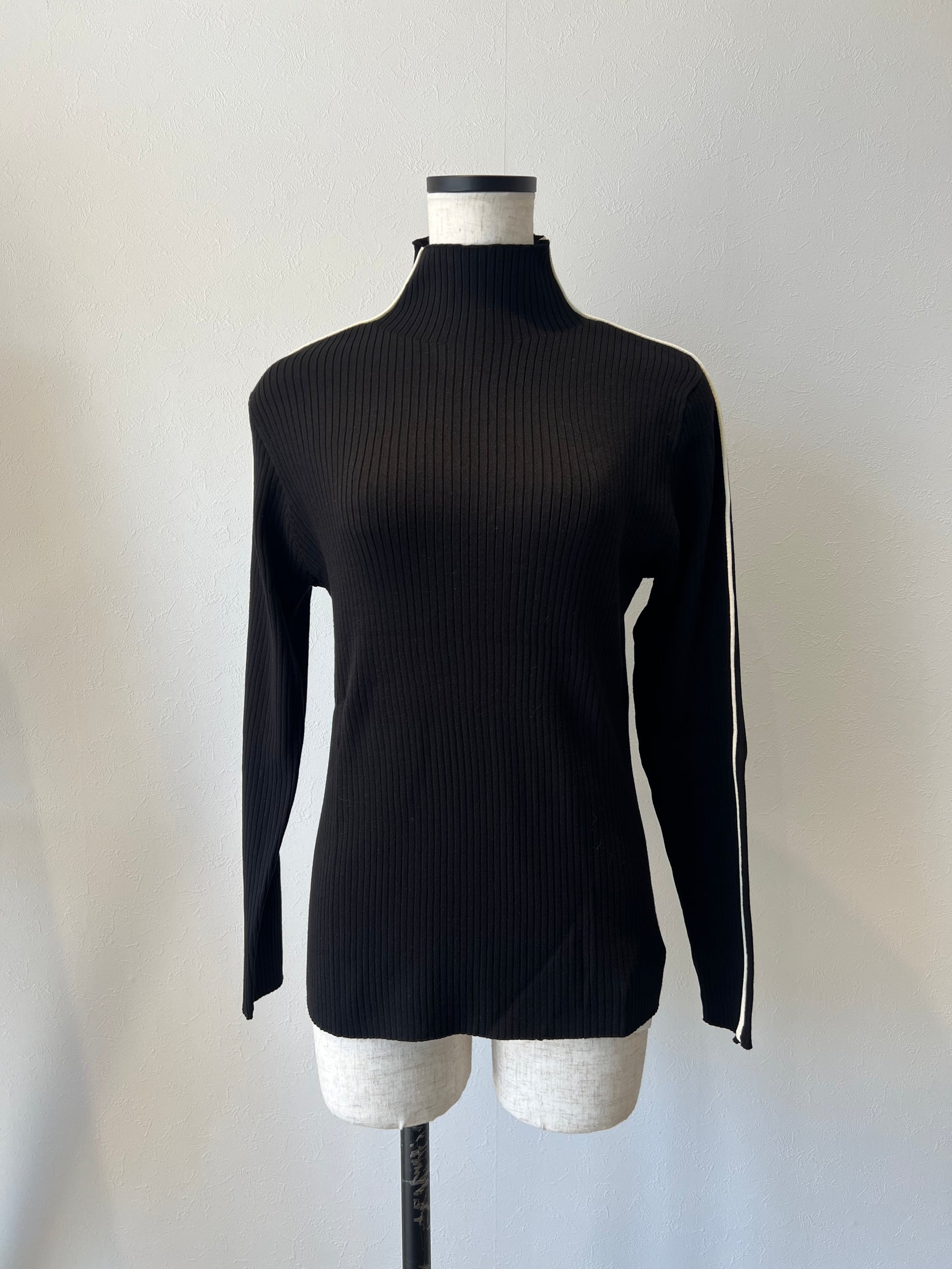 大人っぽい配色ラインでさり気なく映える、リブニット。