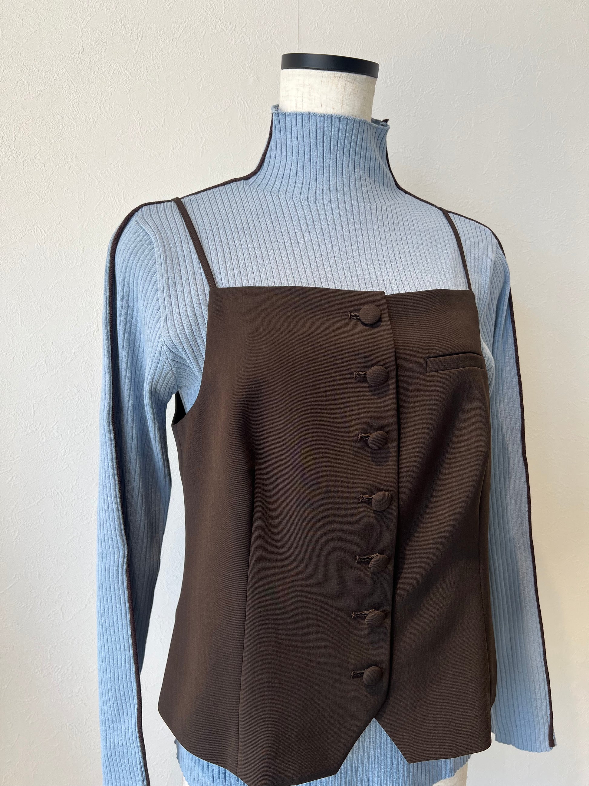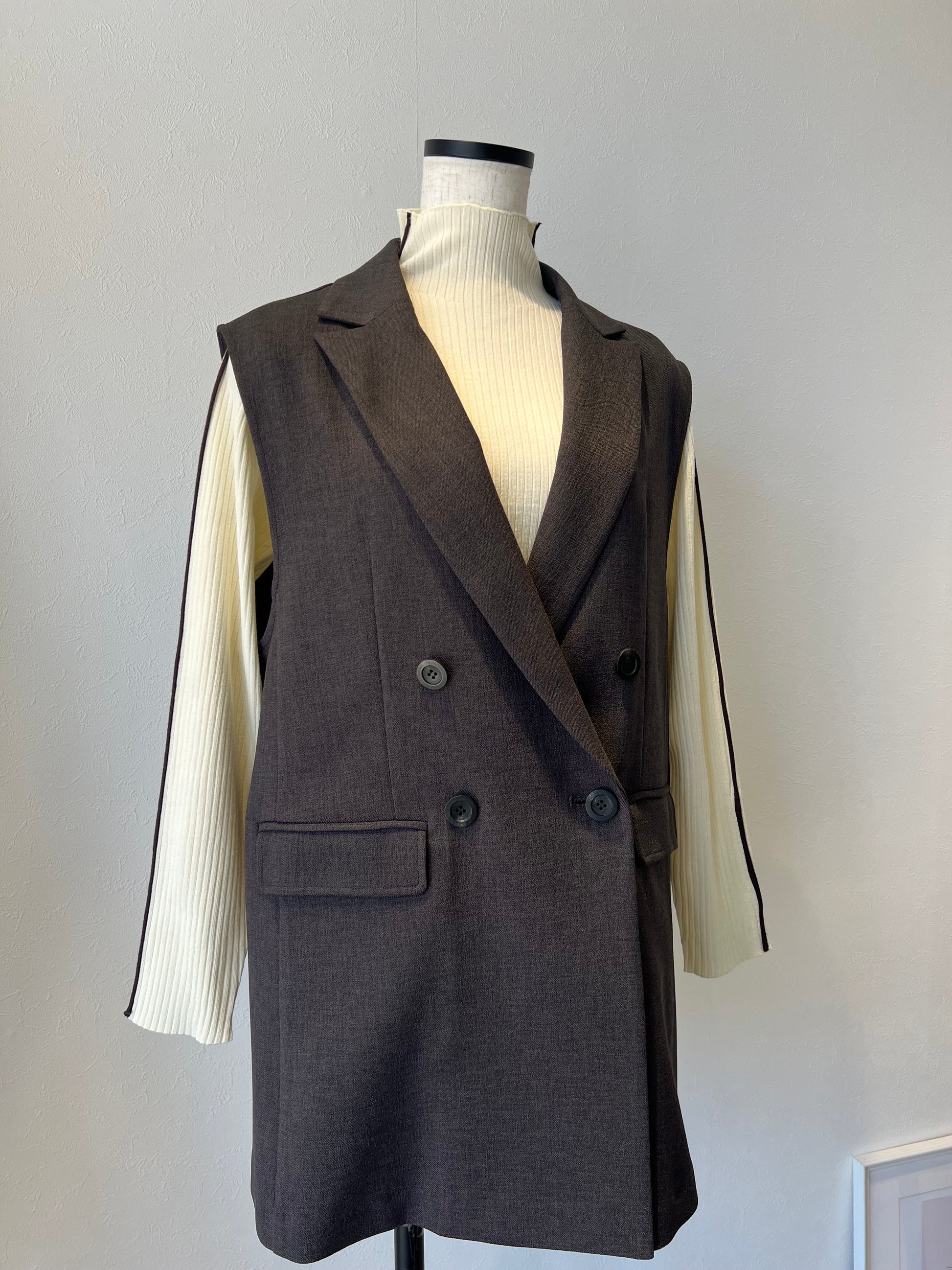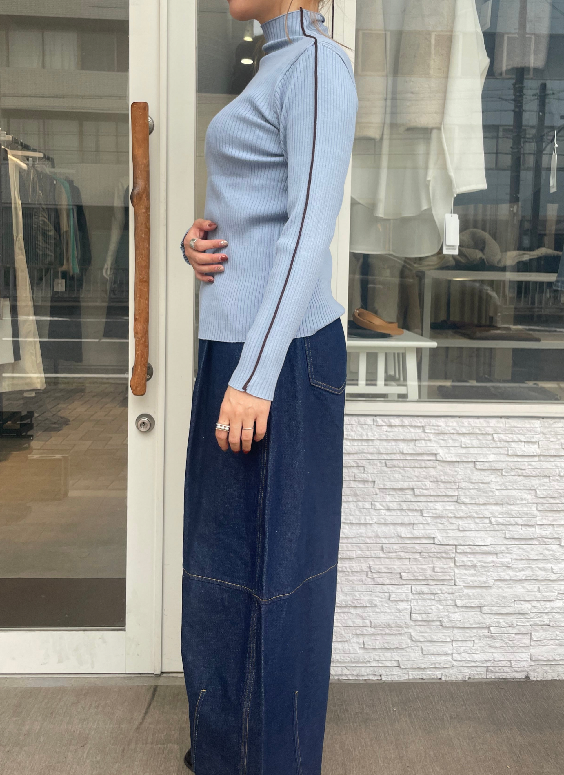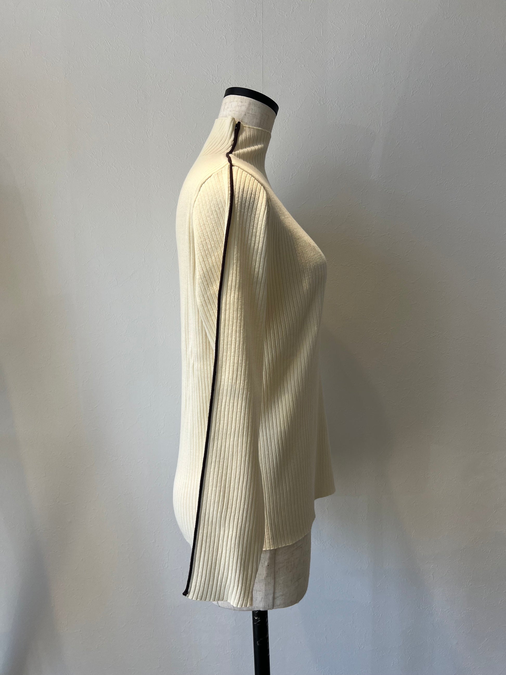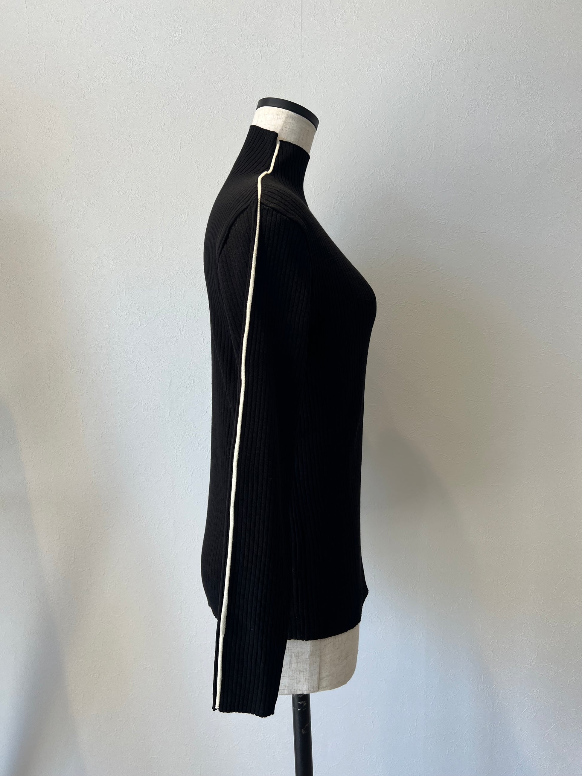大人っぽい配色ラインでさり気なく映える、リブニット。