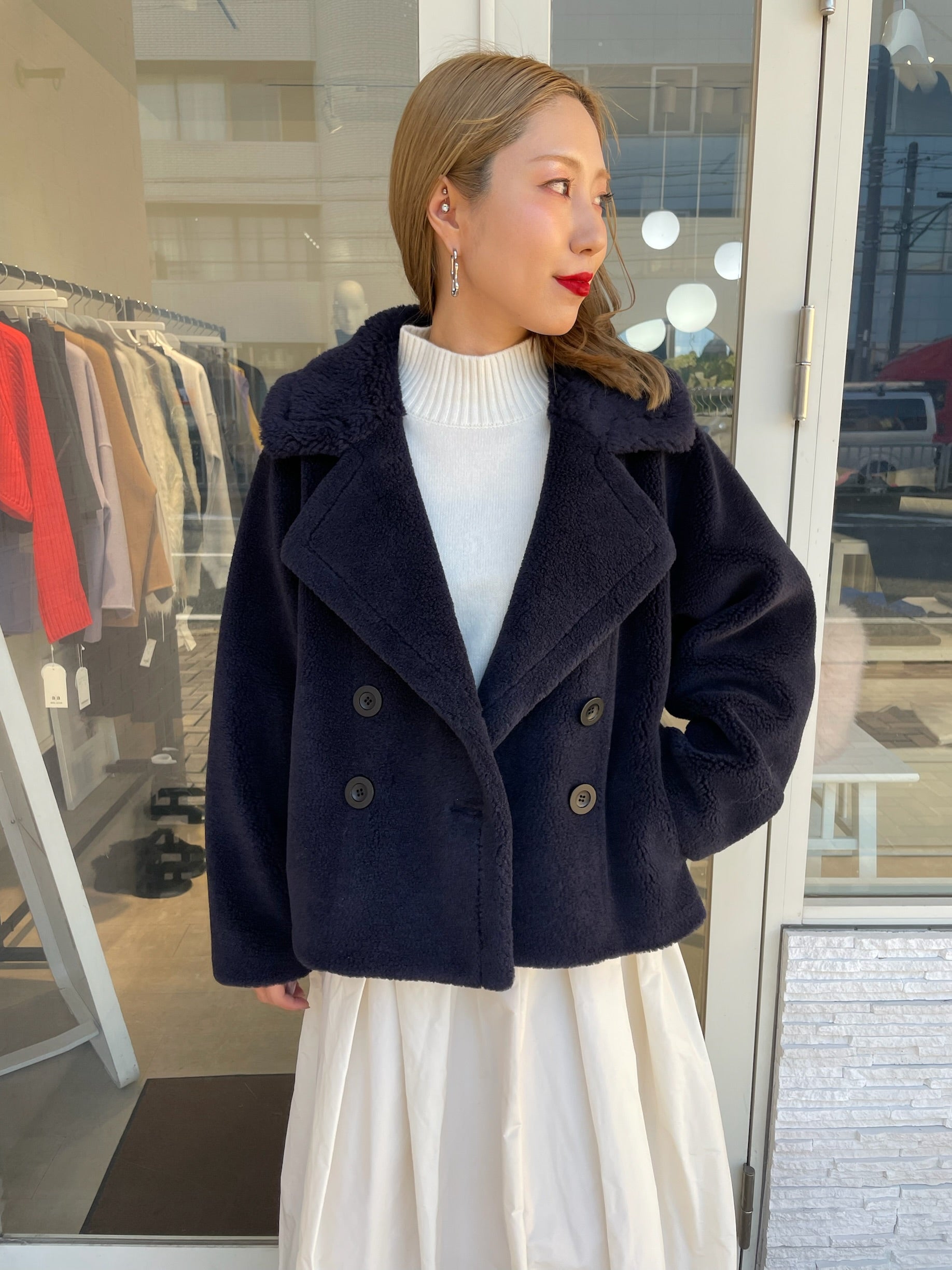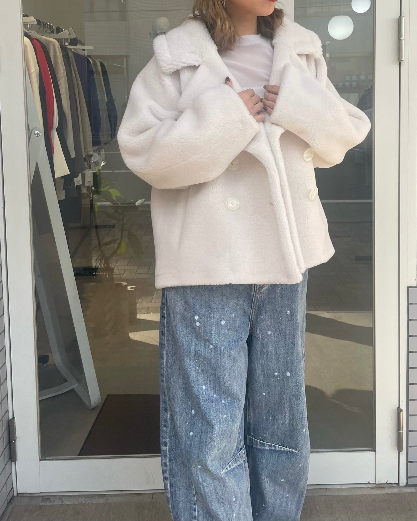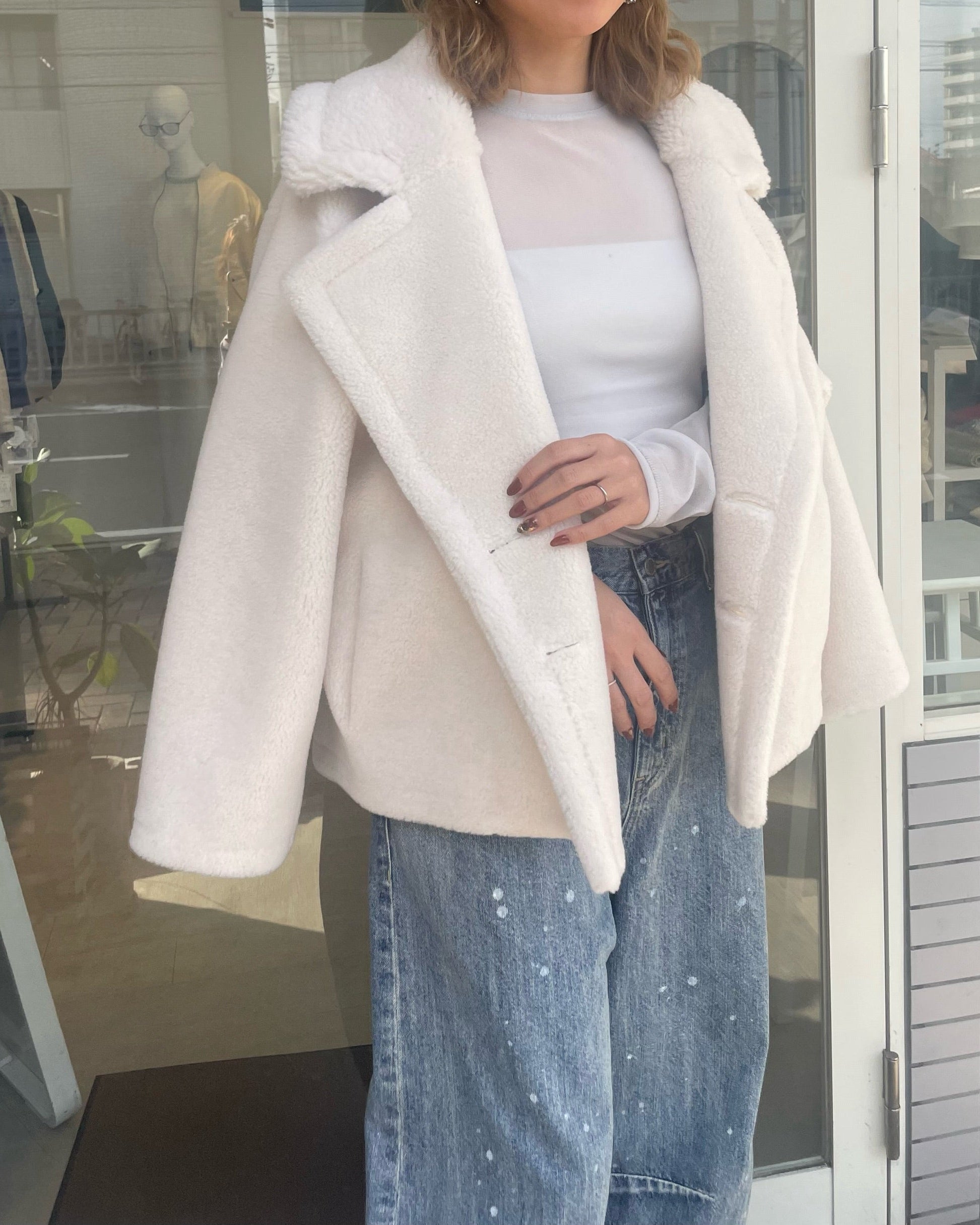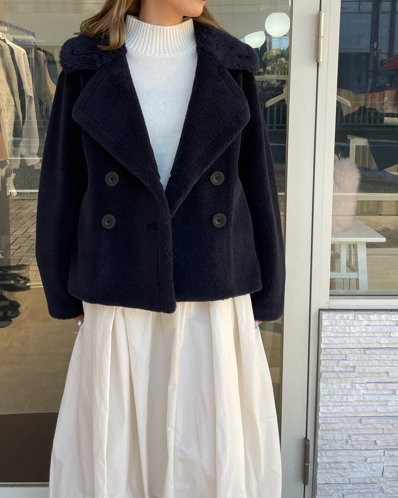 カジュアルな印象のボア素材をダブル仕様にして大人が着やすいデザインに。