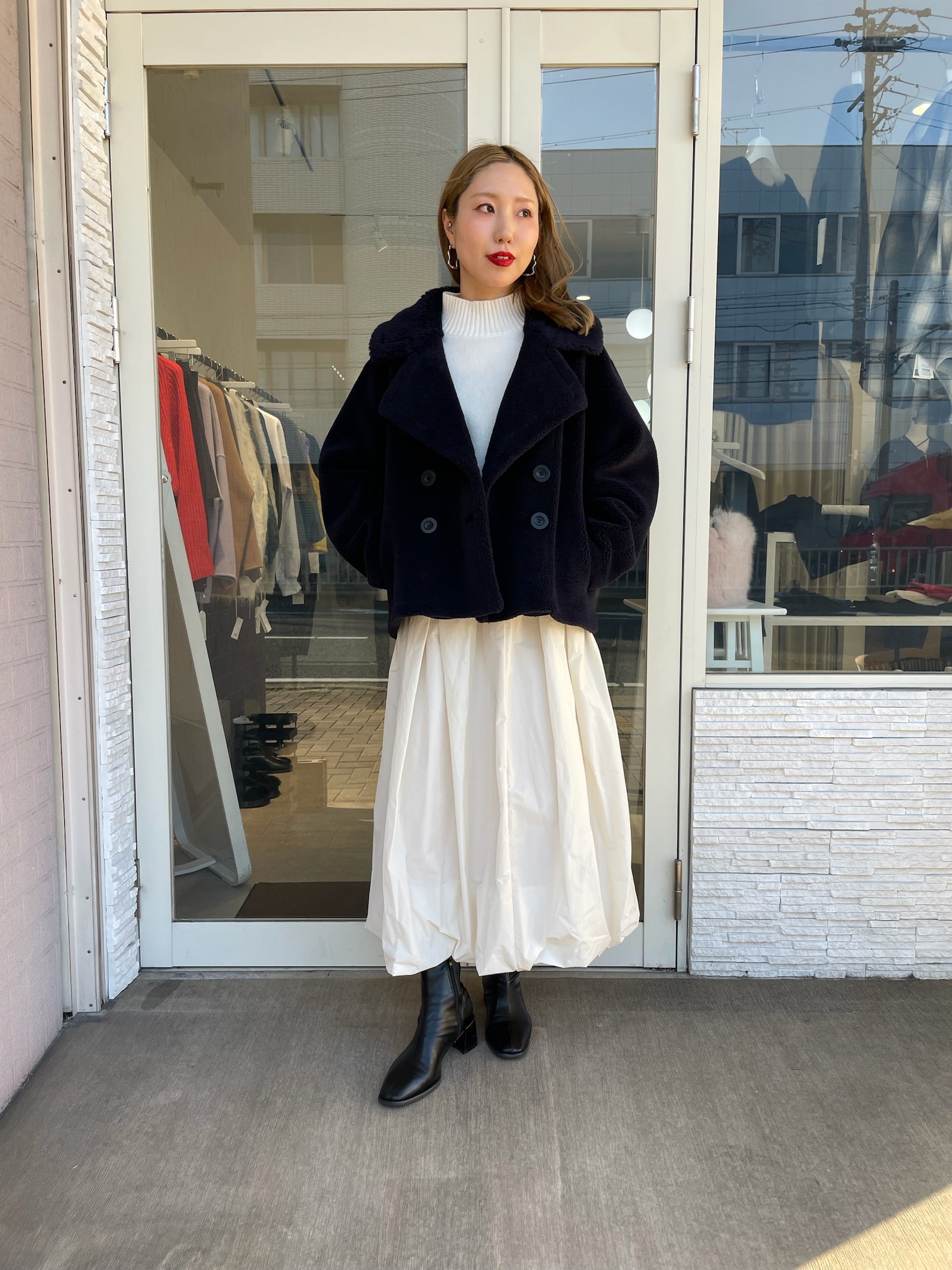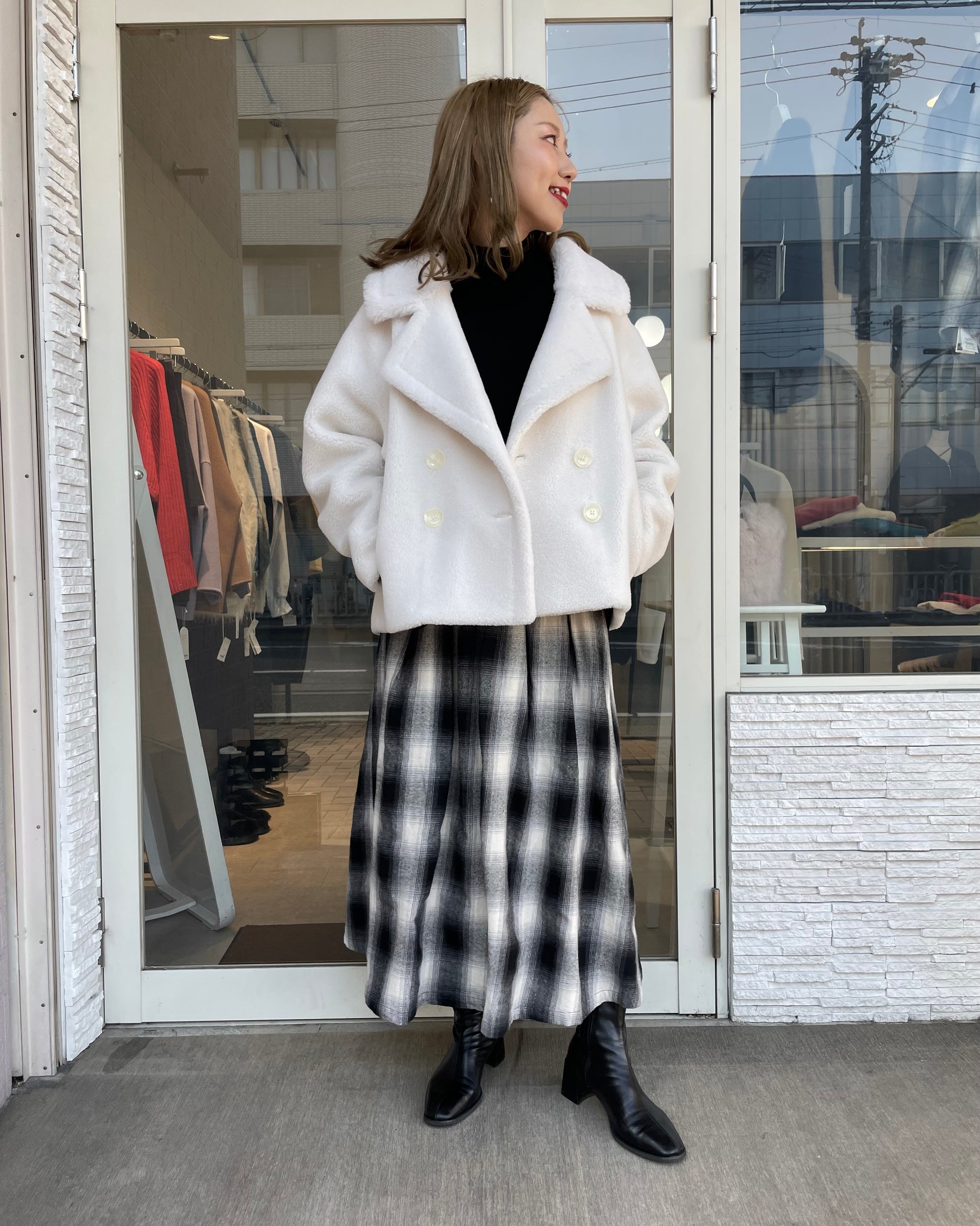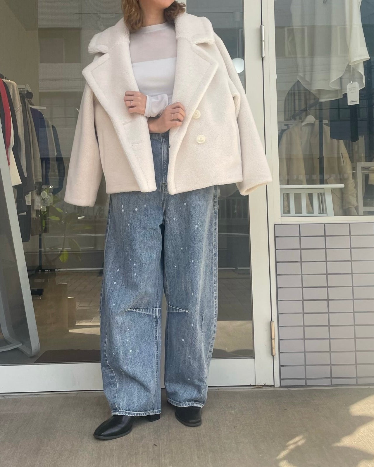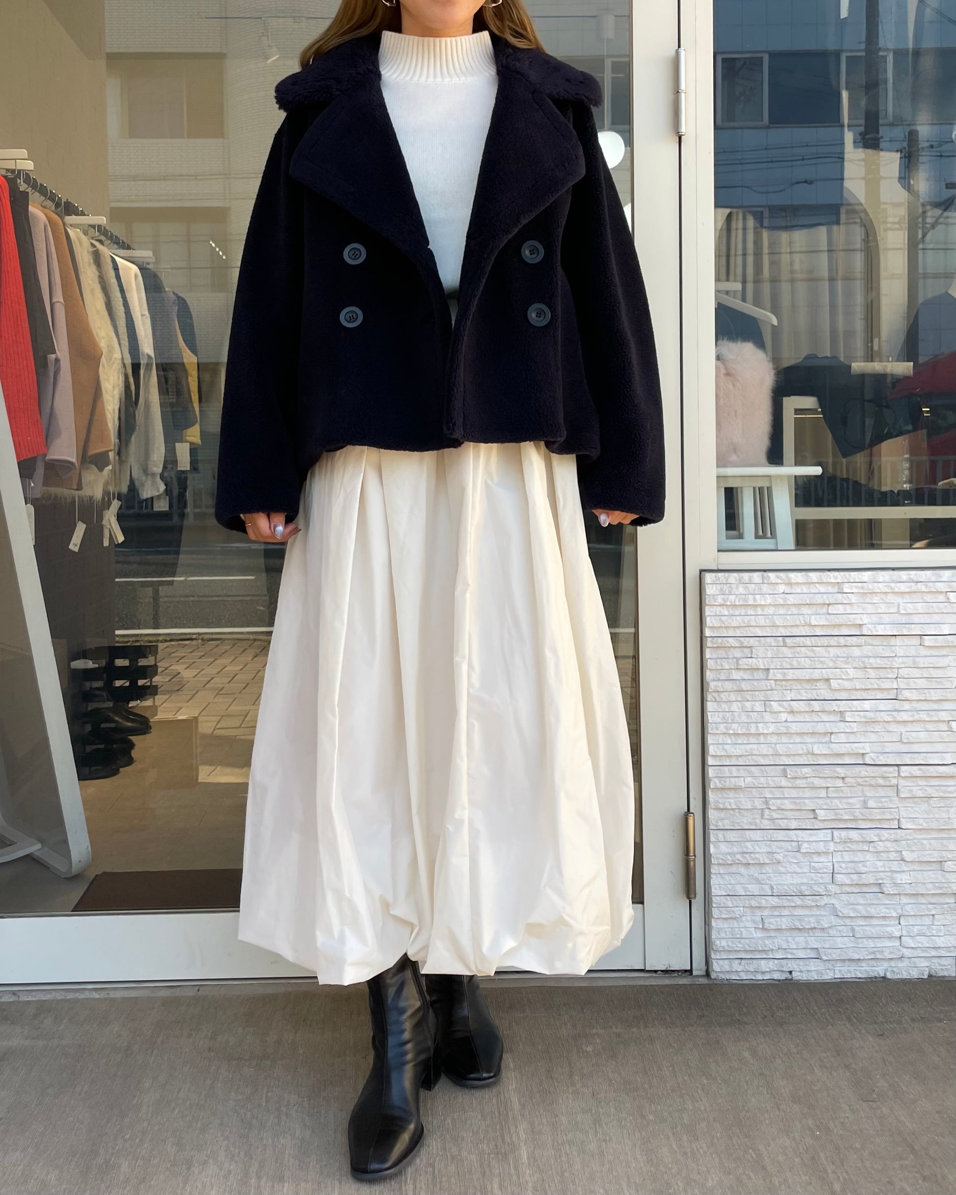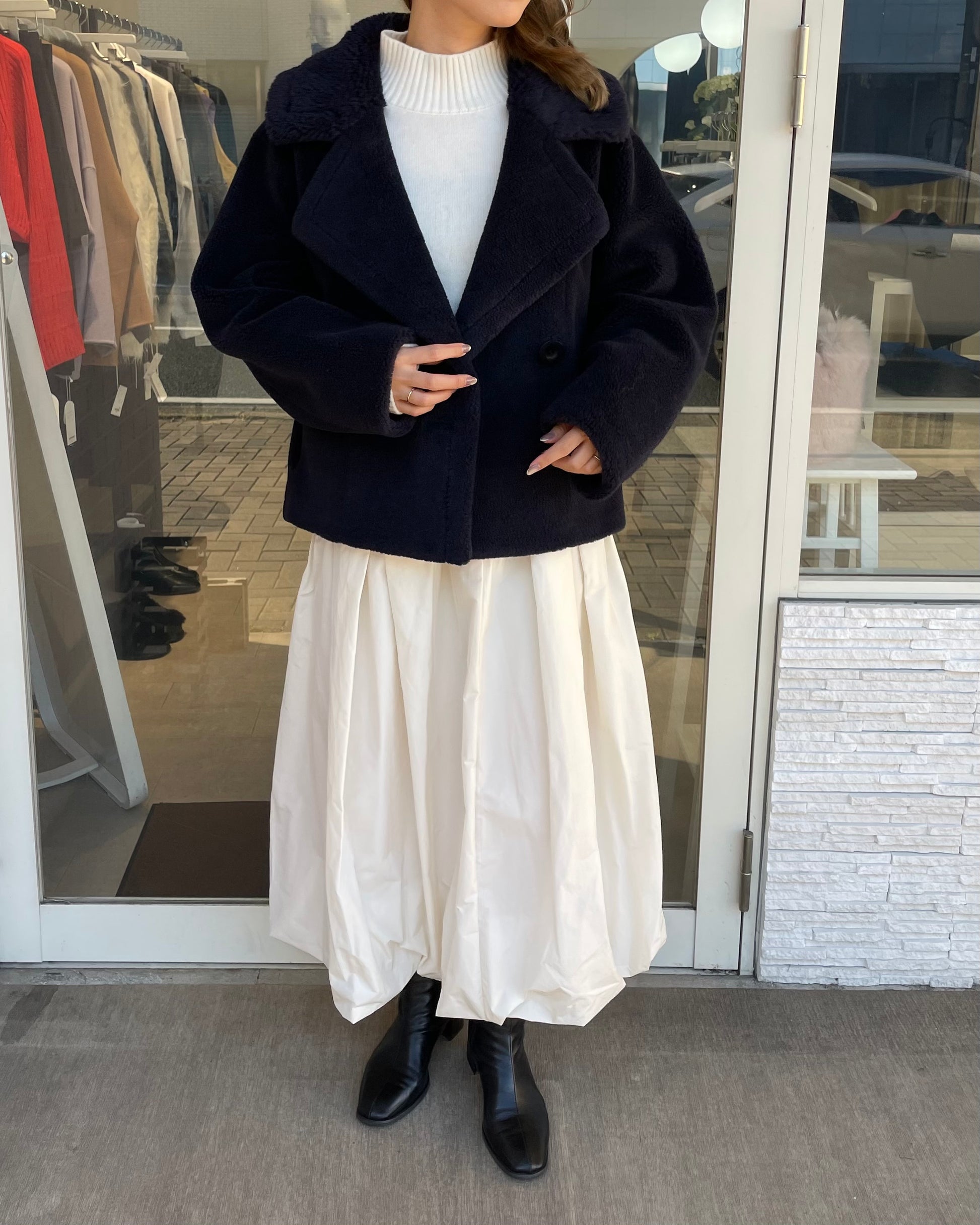 カジュアルな印象のボア素材をダブル仕様にして大人が着やすいデザインに。