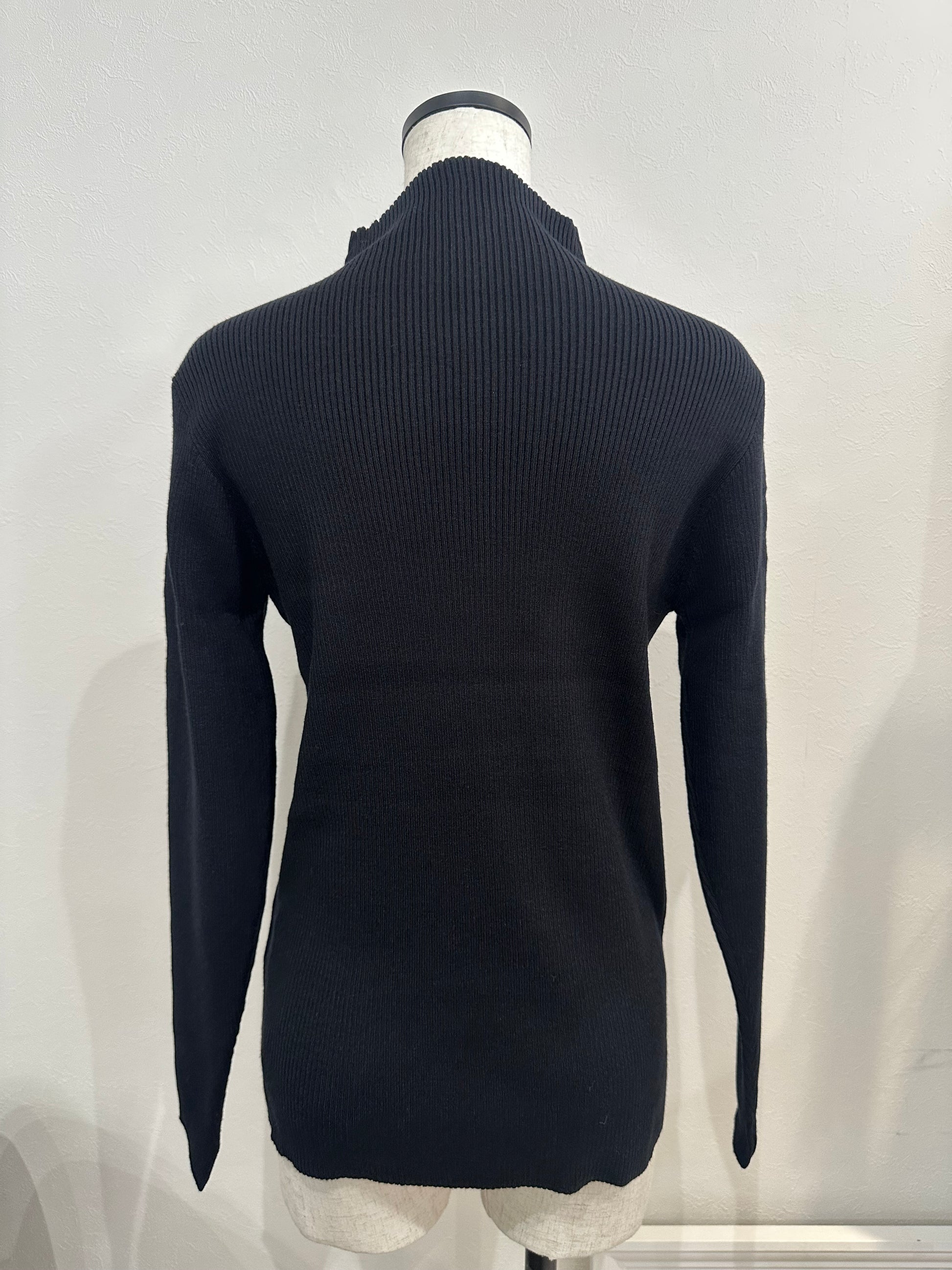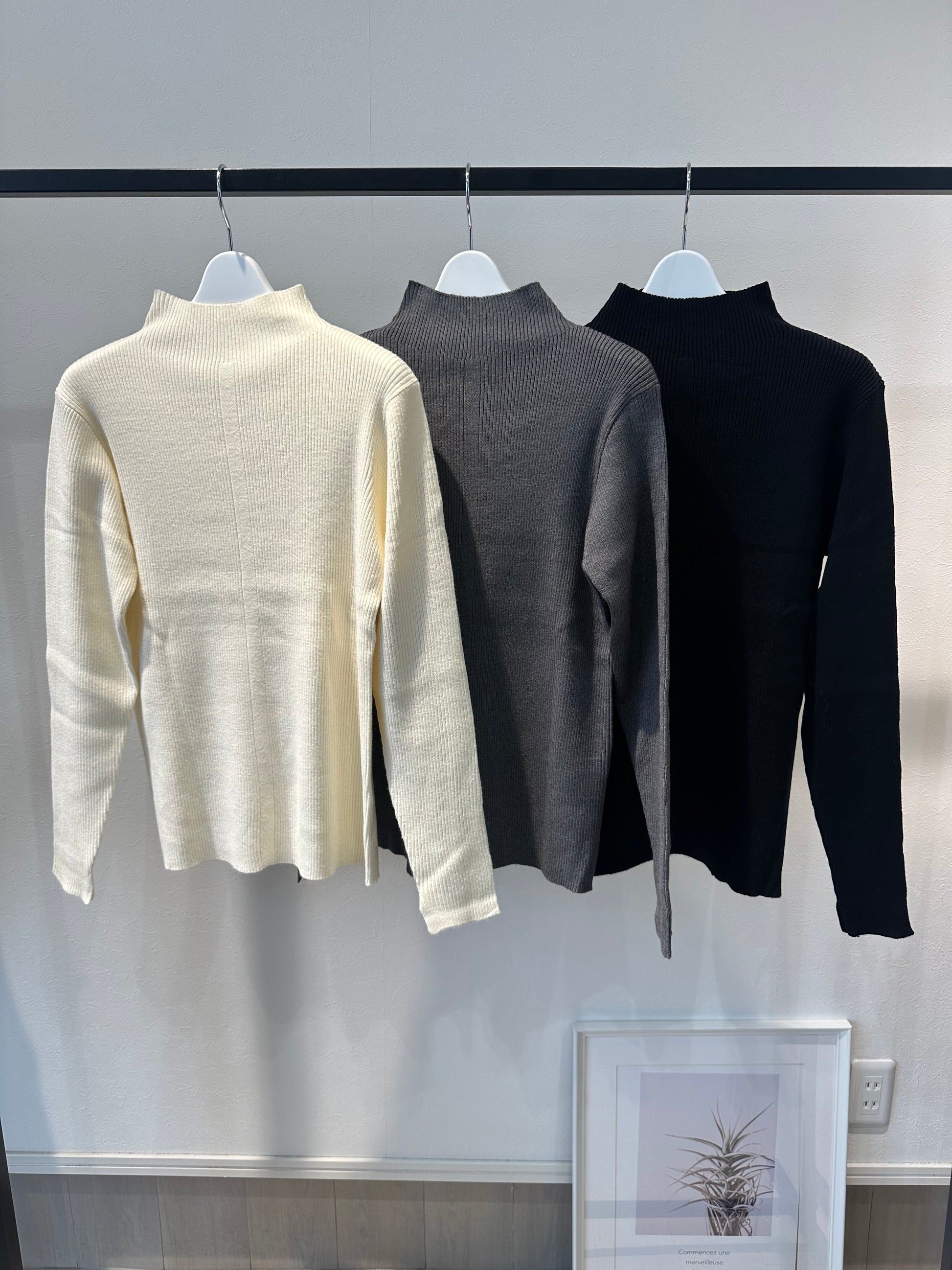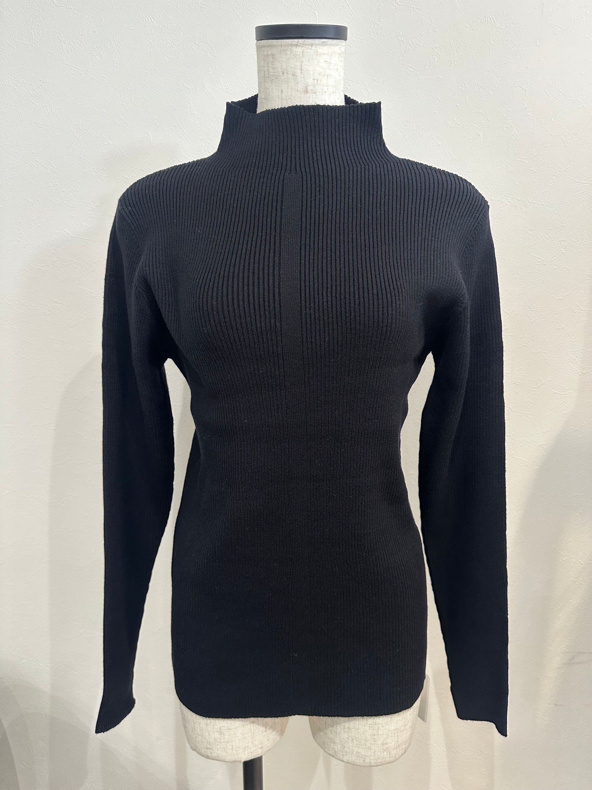 細めのリブ編みですっきり見えしつつ、身体に程よくフィットする絶妙なシルエットが魅力の一枚です。