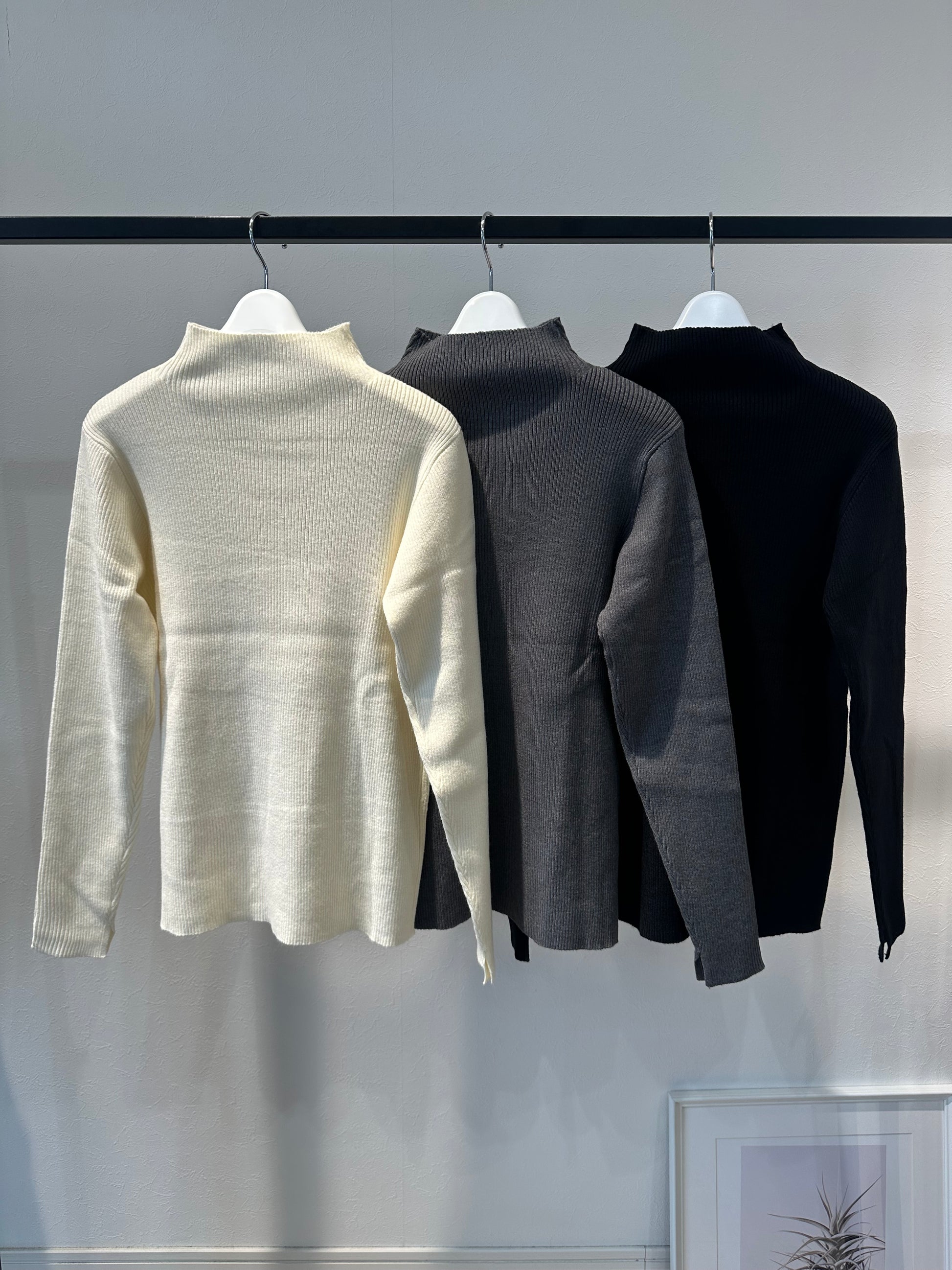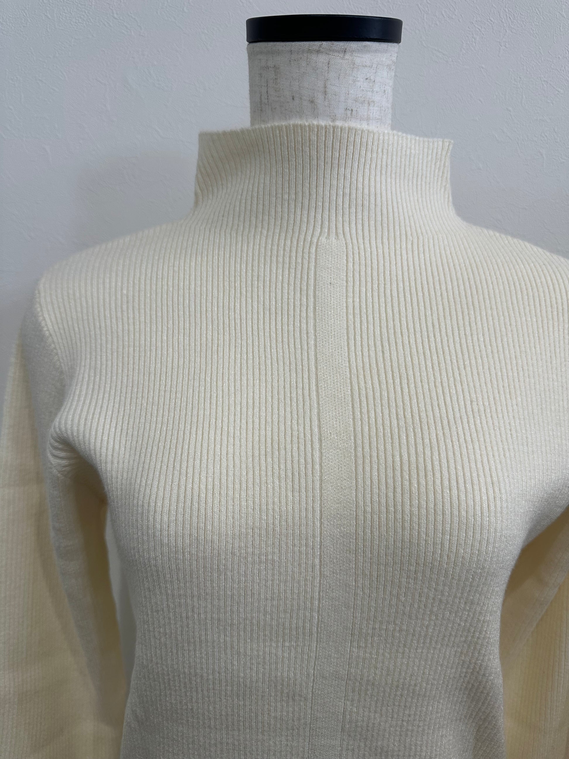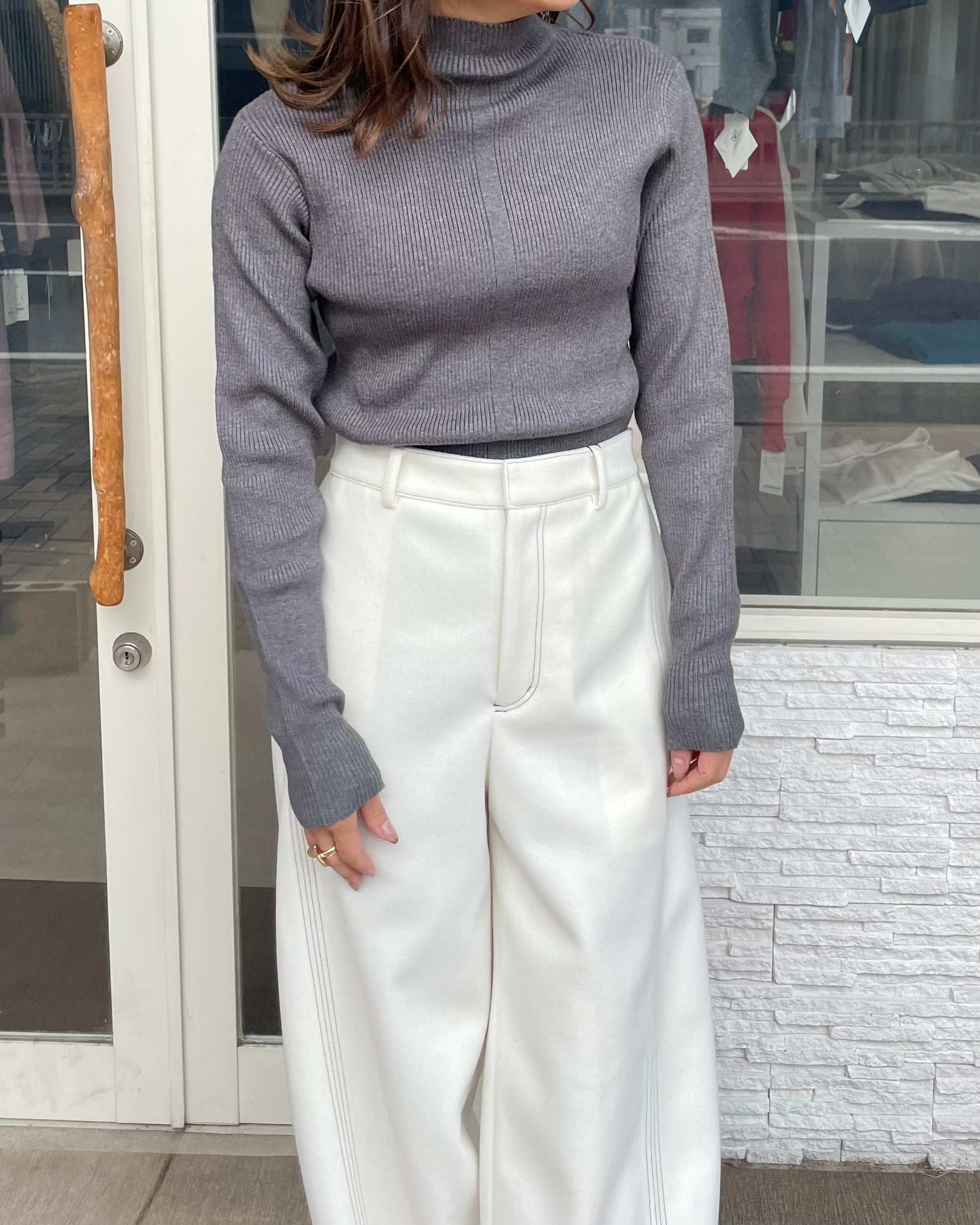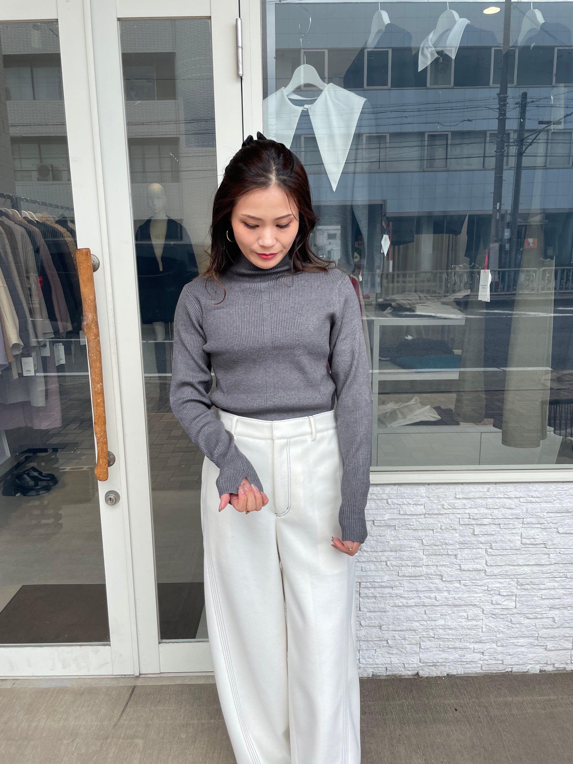 細めのリブ編みですっきり見えしつつ、身体に程よくフィットする絶妙なシルエットが魅力の一枚です。