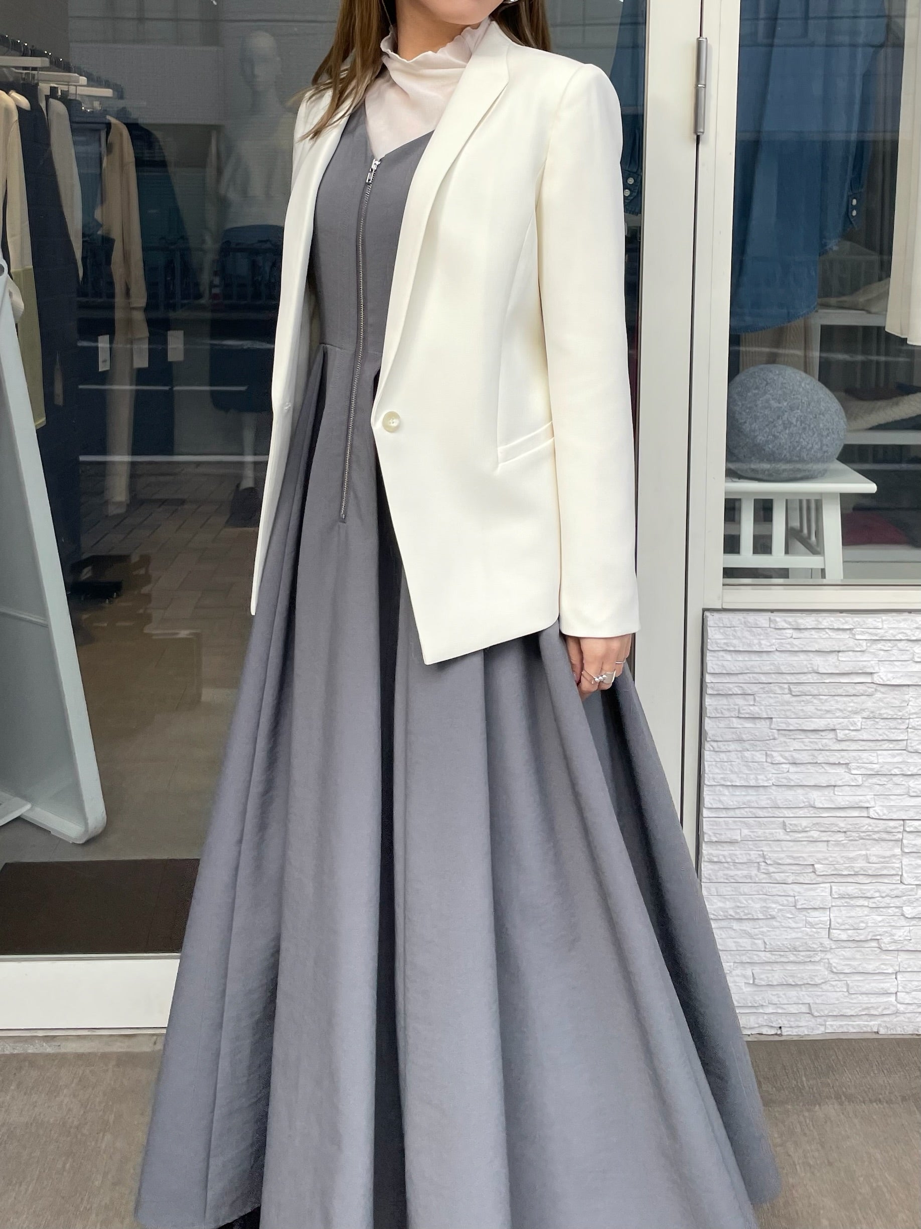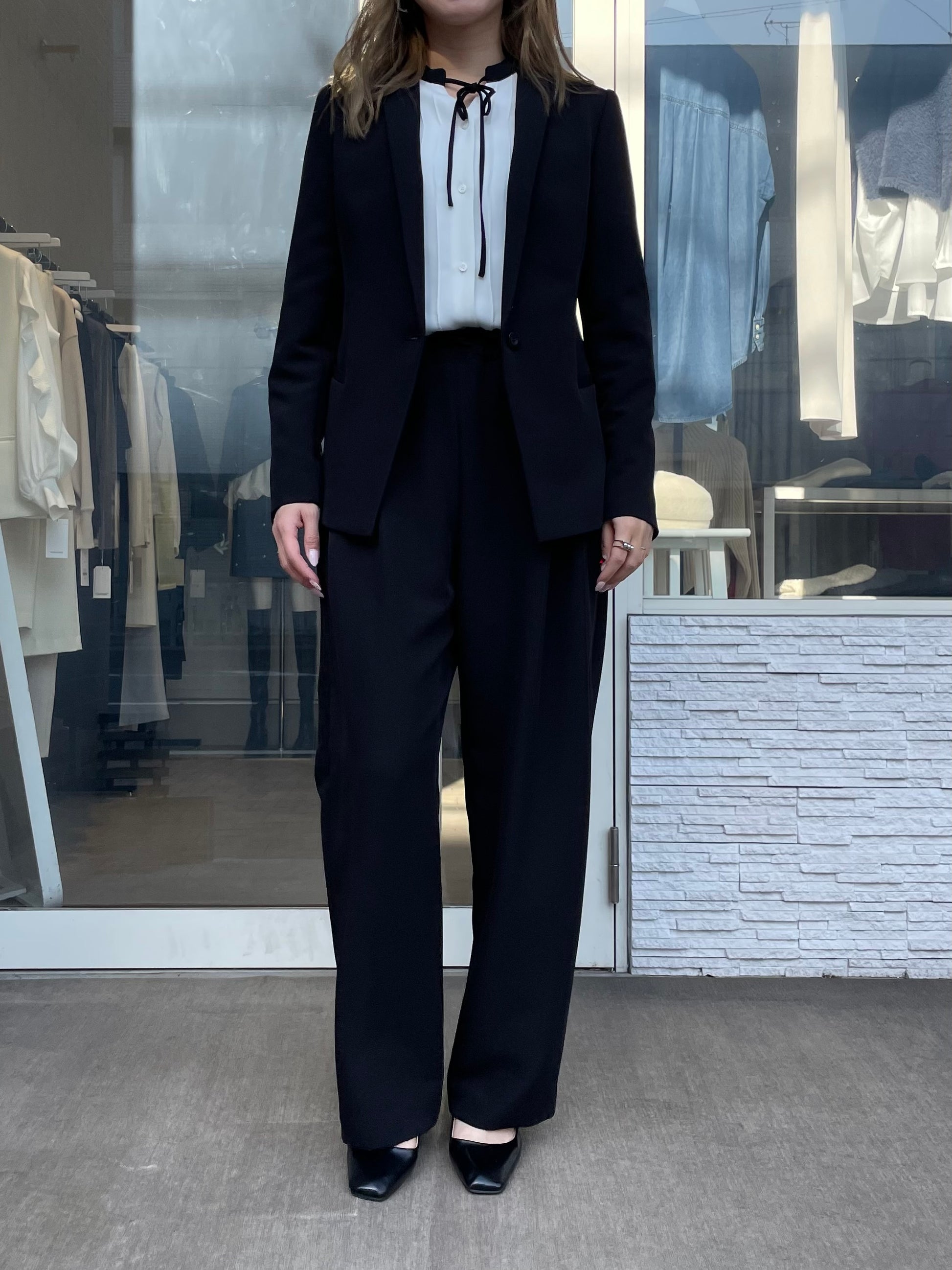 すっきりとしたシルエットできちんと感のある装いへ導いてくれます。
