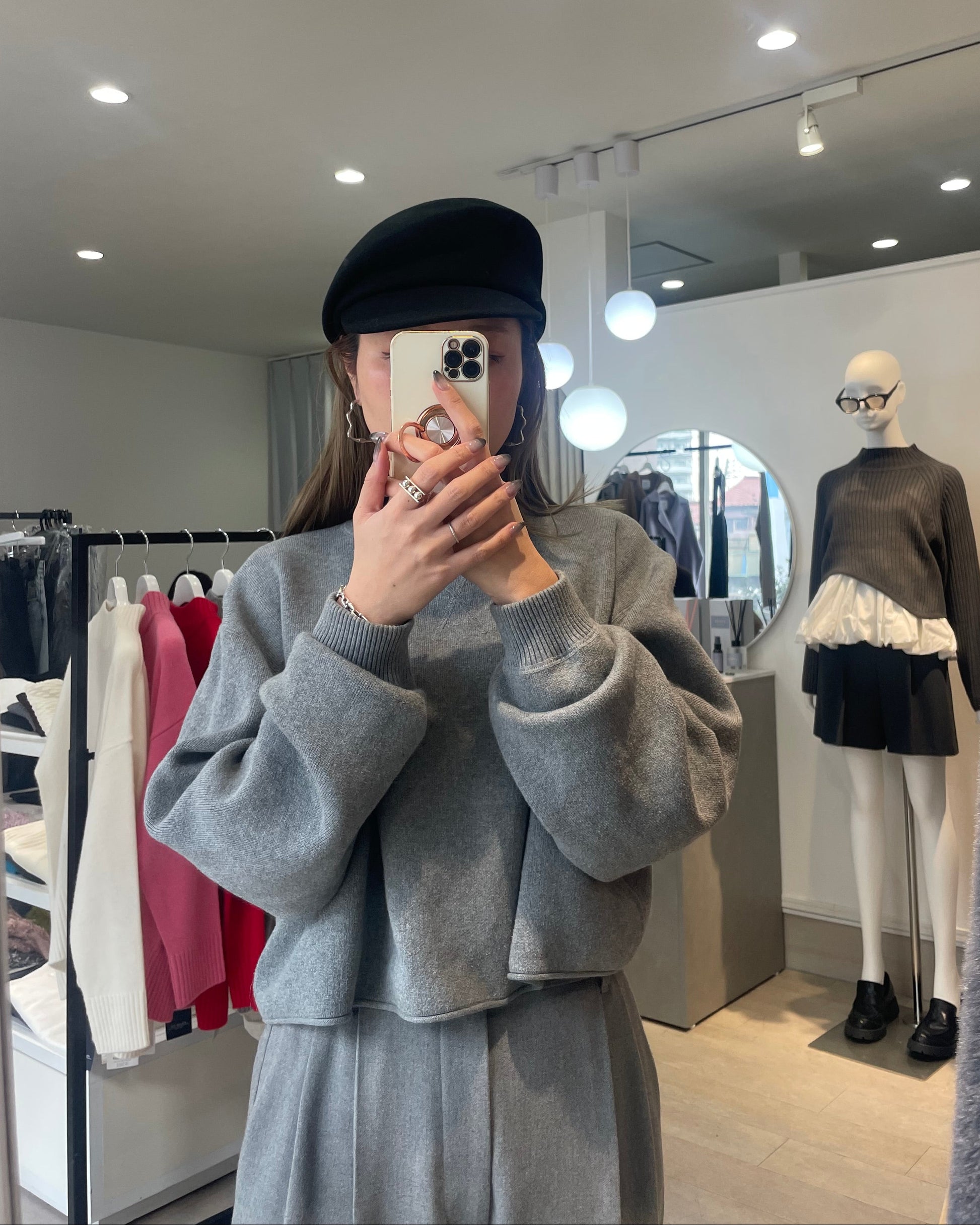程よいボリューム感が顔周りをすっきりと見せ、被るだけでコーディネートにこなれ感をプラスします。