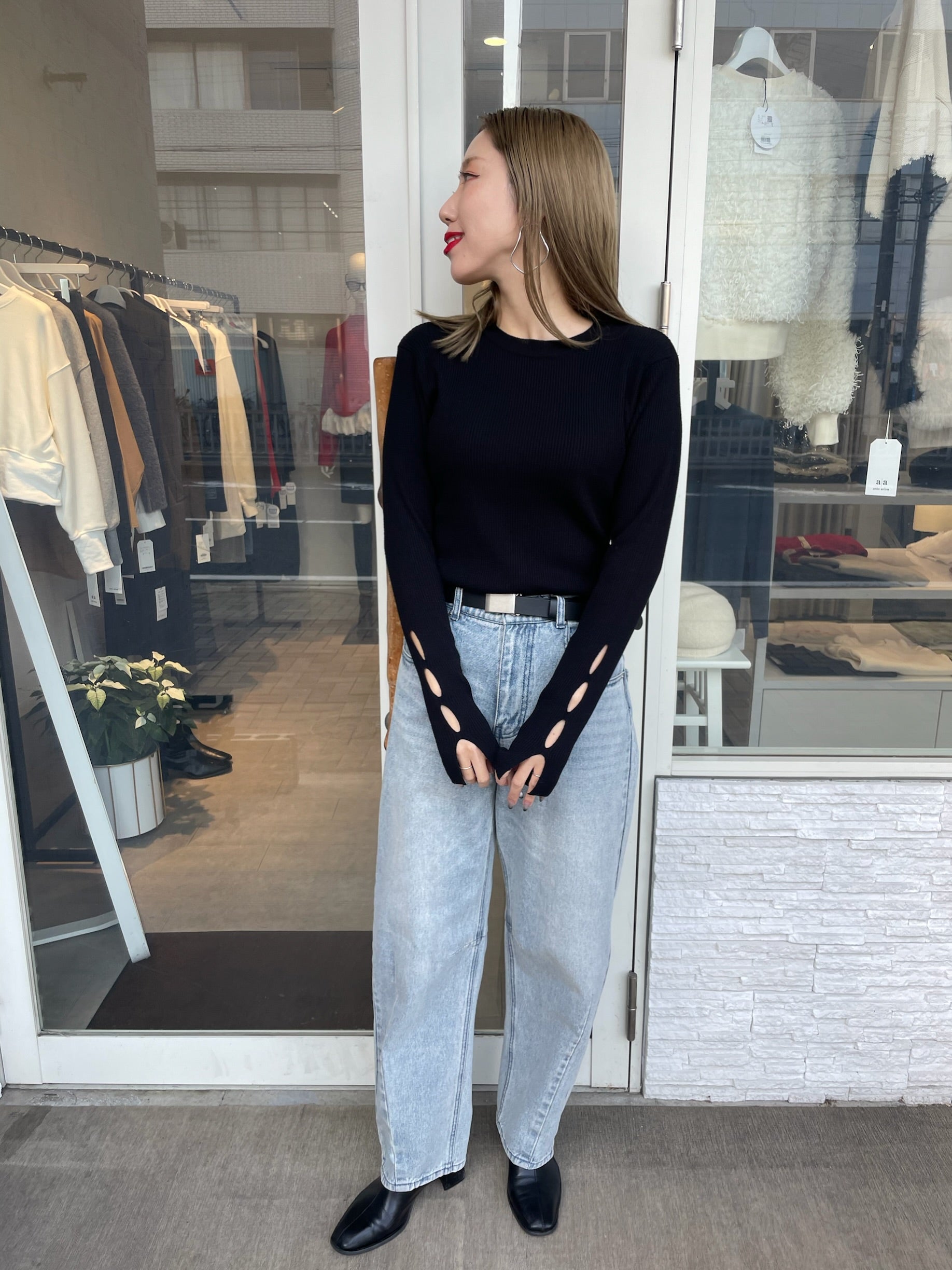 ※デニム製品、濃色製品の色落ち・色移りについて 濃い色に染められた製品は、摩擦により色が落ち、他の衣類やバッグ、椅子などを汚すことがあります。 また、一般的に温度が高く湿った状態(雨に濡れた時・洗濯の後・汗をかいた時など)では、さらに色が落ちやすくなります。 素材・加工の特性上、淡色・白い製品との組み合わせはお避けください。