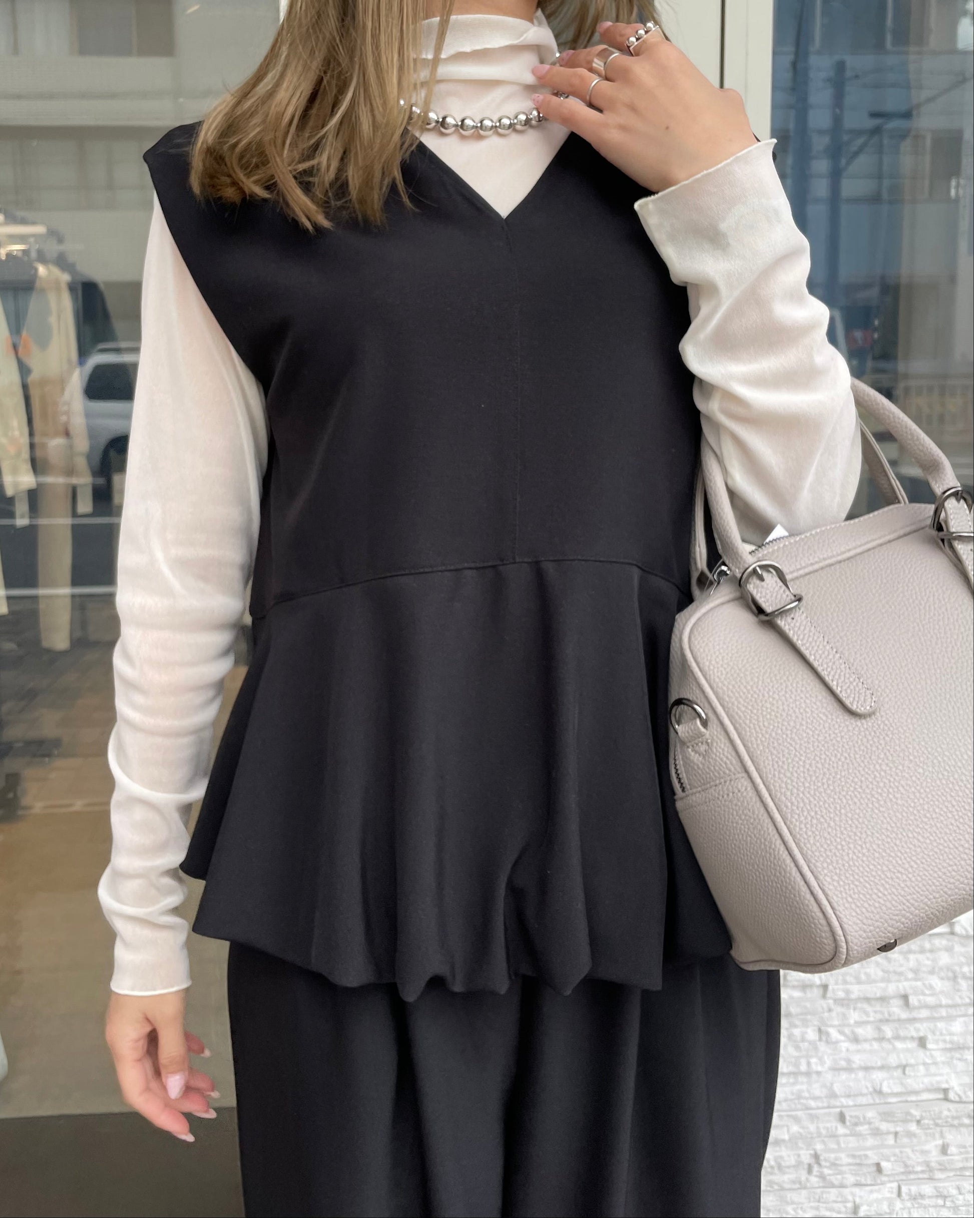 ぴったりしすぎない程よいサイジングで、一枚着としてはもちろん、インナーとしても大活躍してくれる優秀アイテムです。