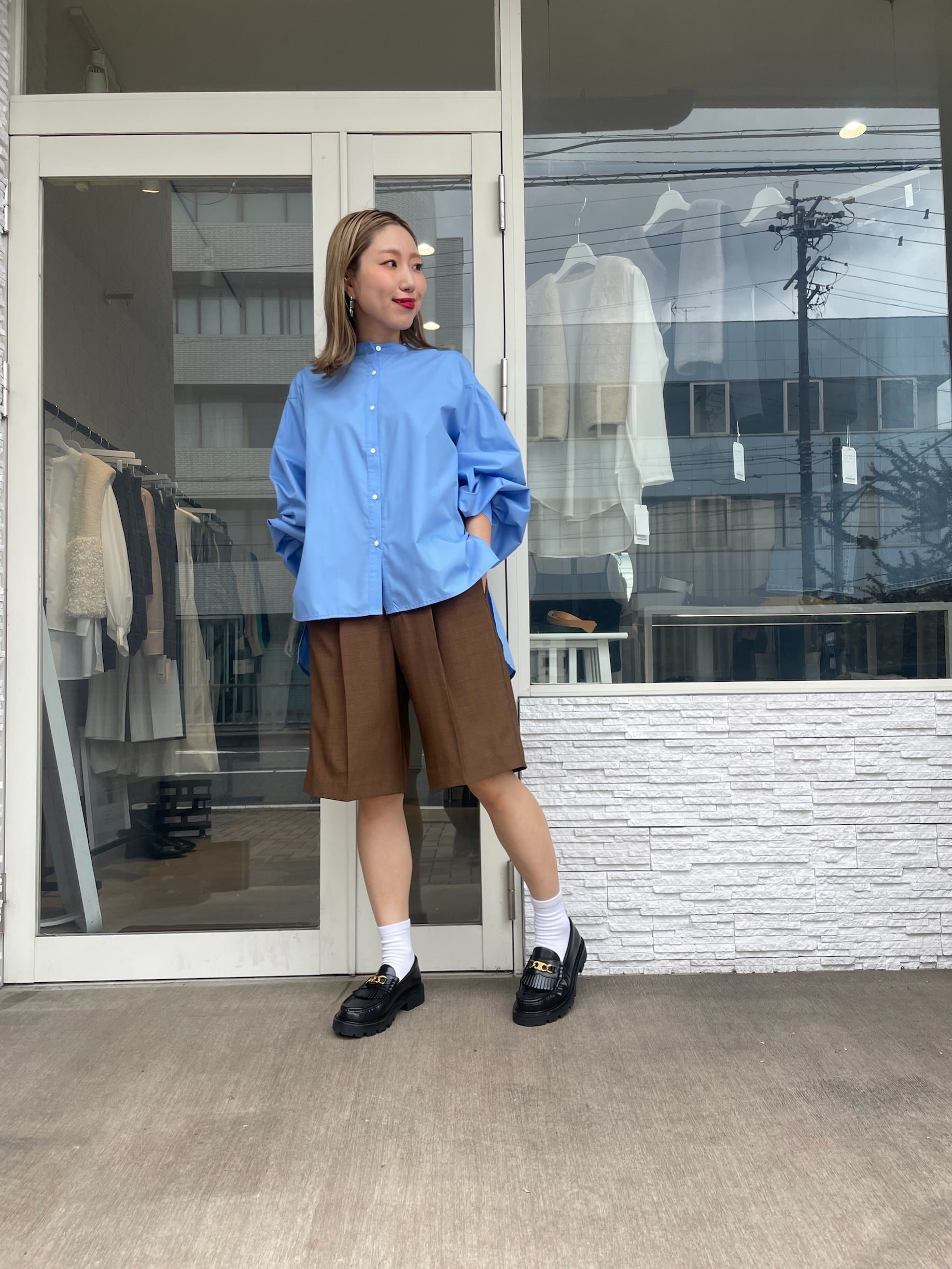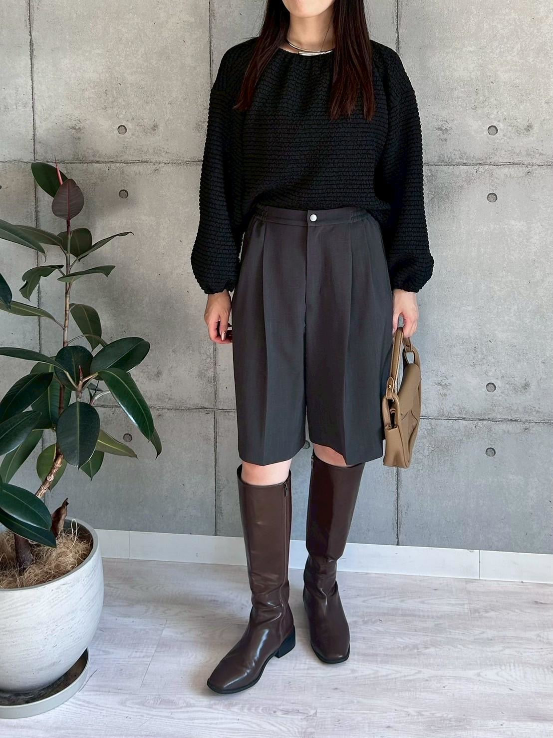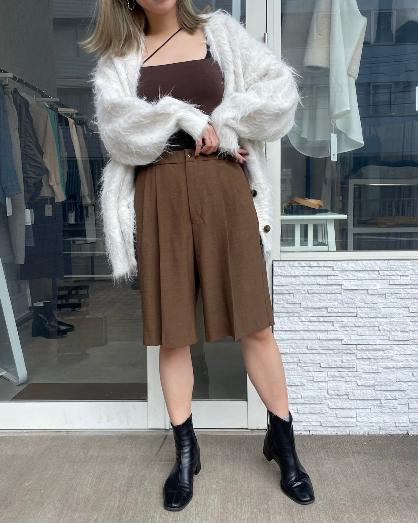 大人っぽく着こなせるように、タックのバランスやパンツ丈も絶妙に設定しています。