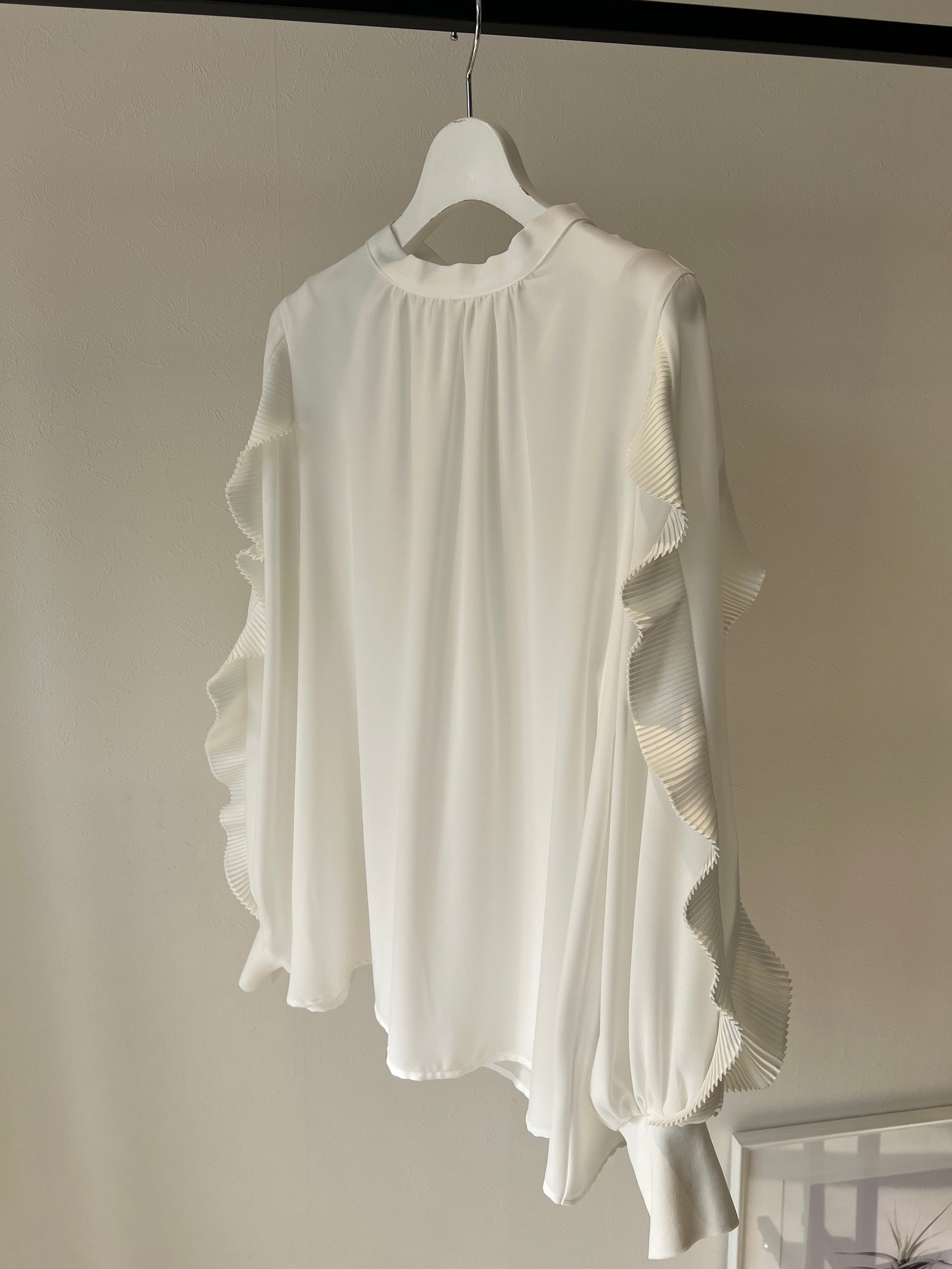前後2WAYでお楽しみいただける、華やかなお袖フリルブラウス。
