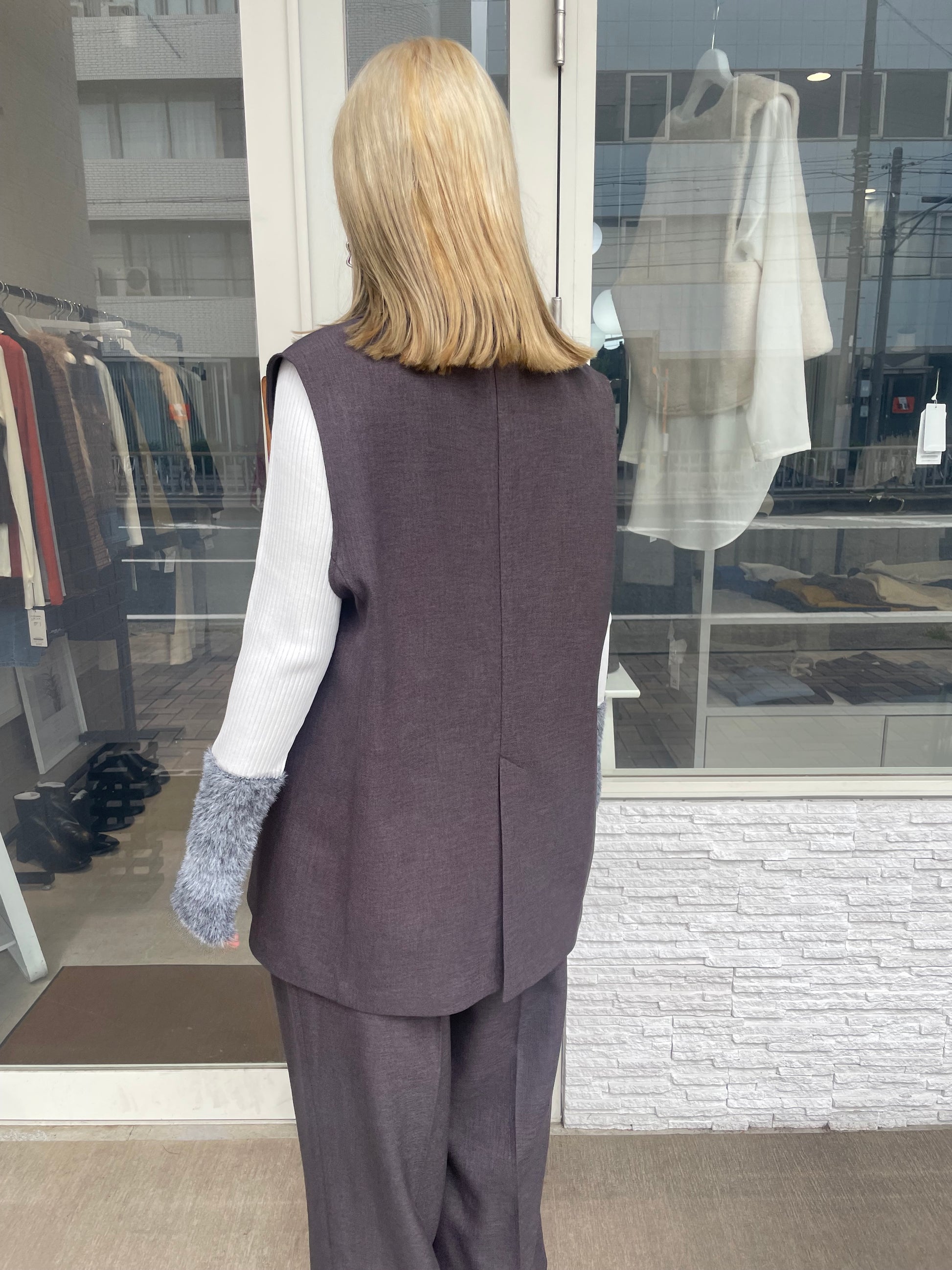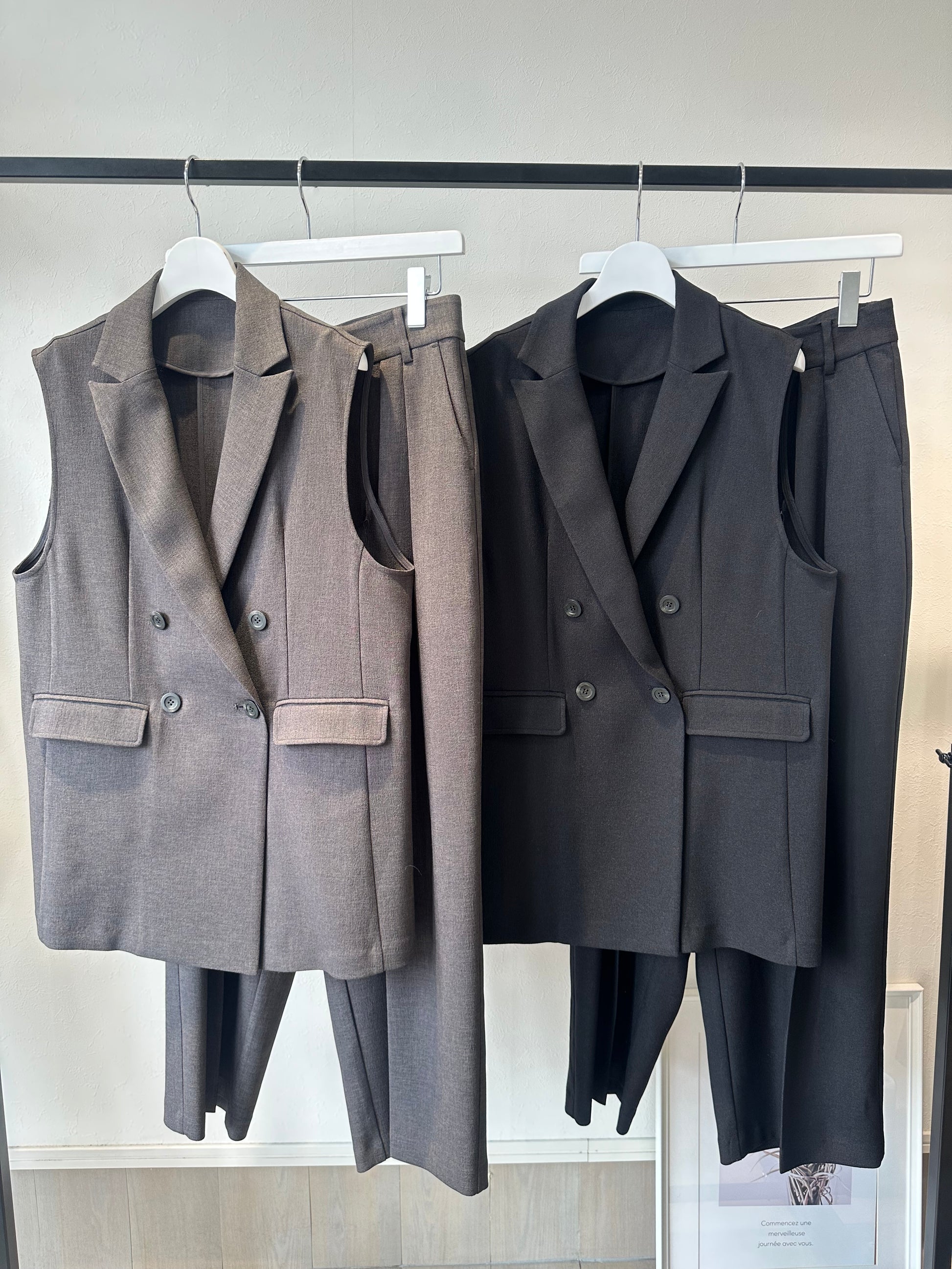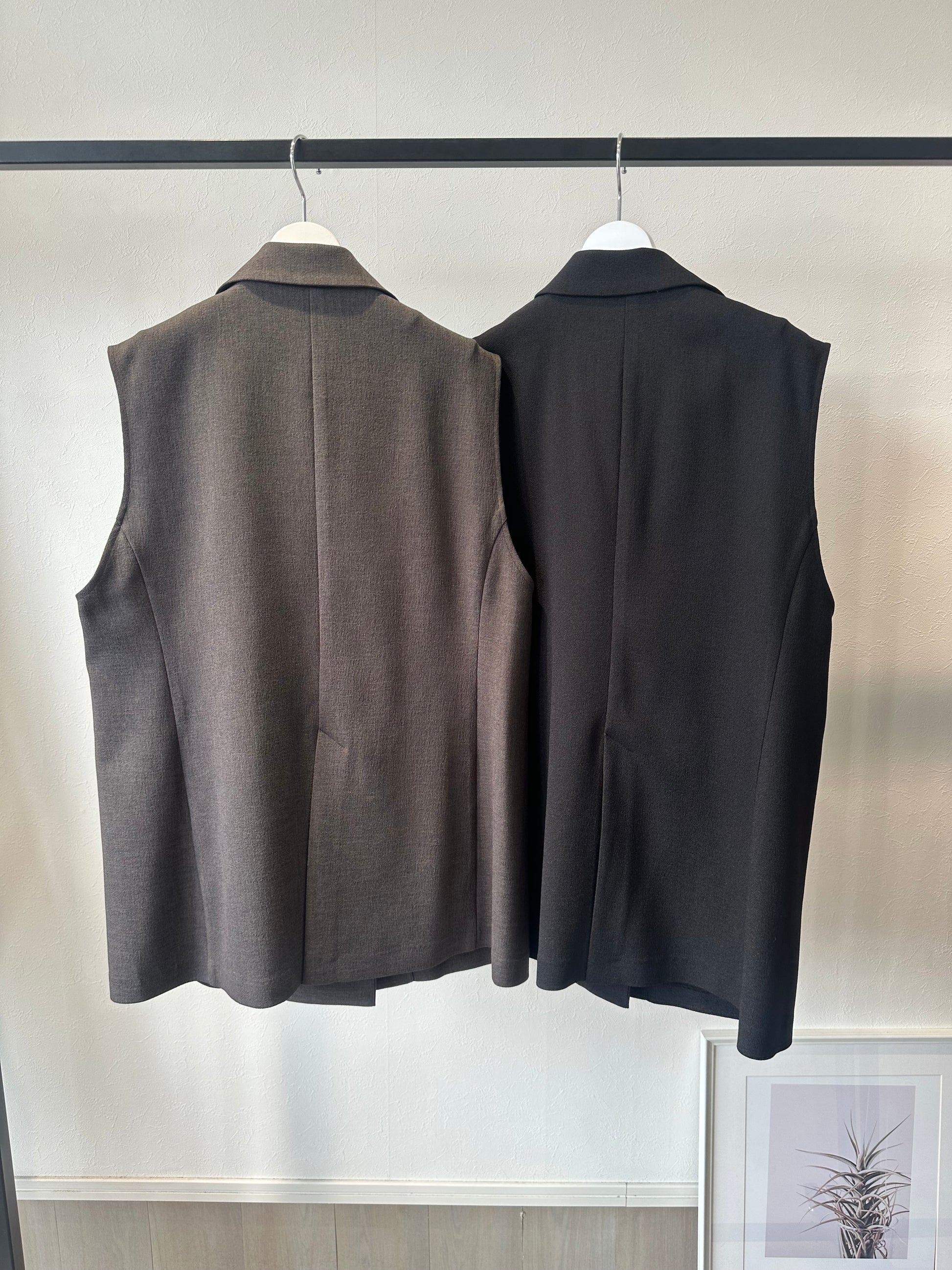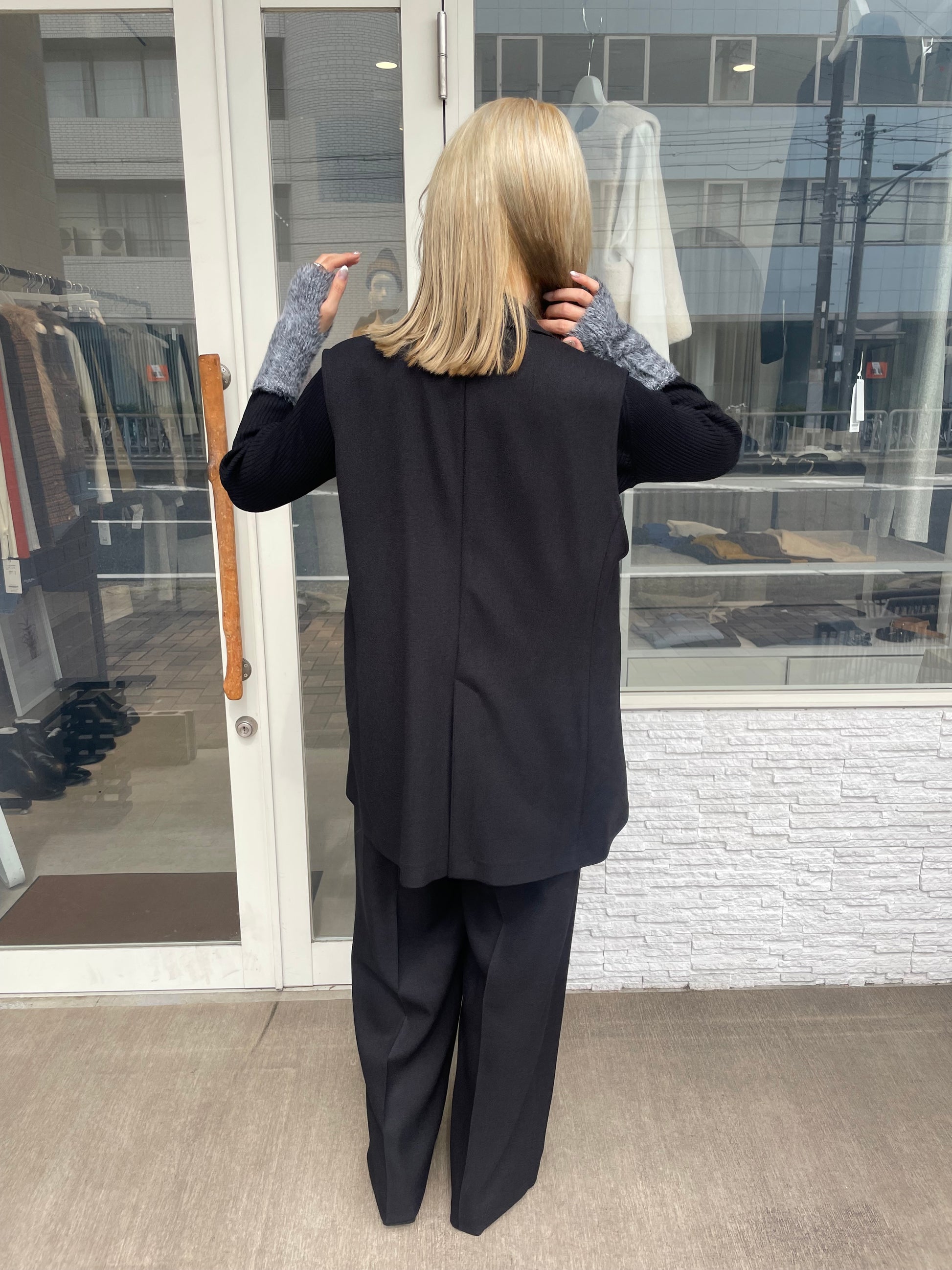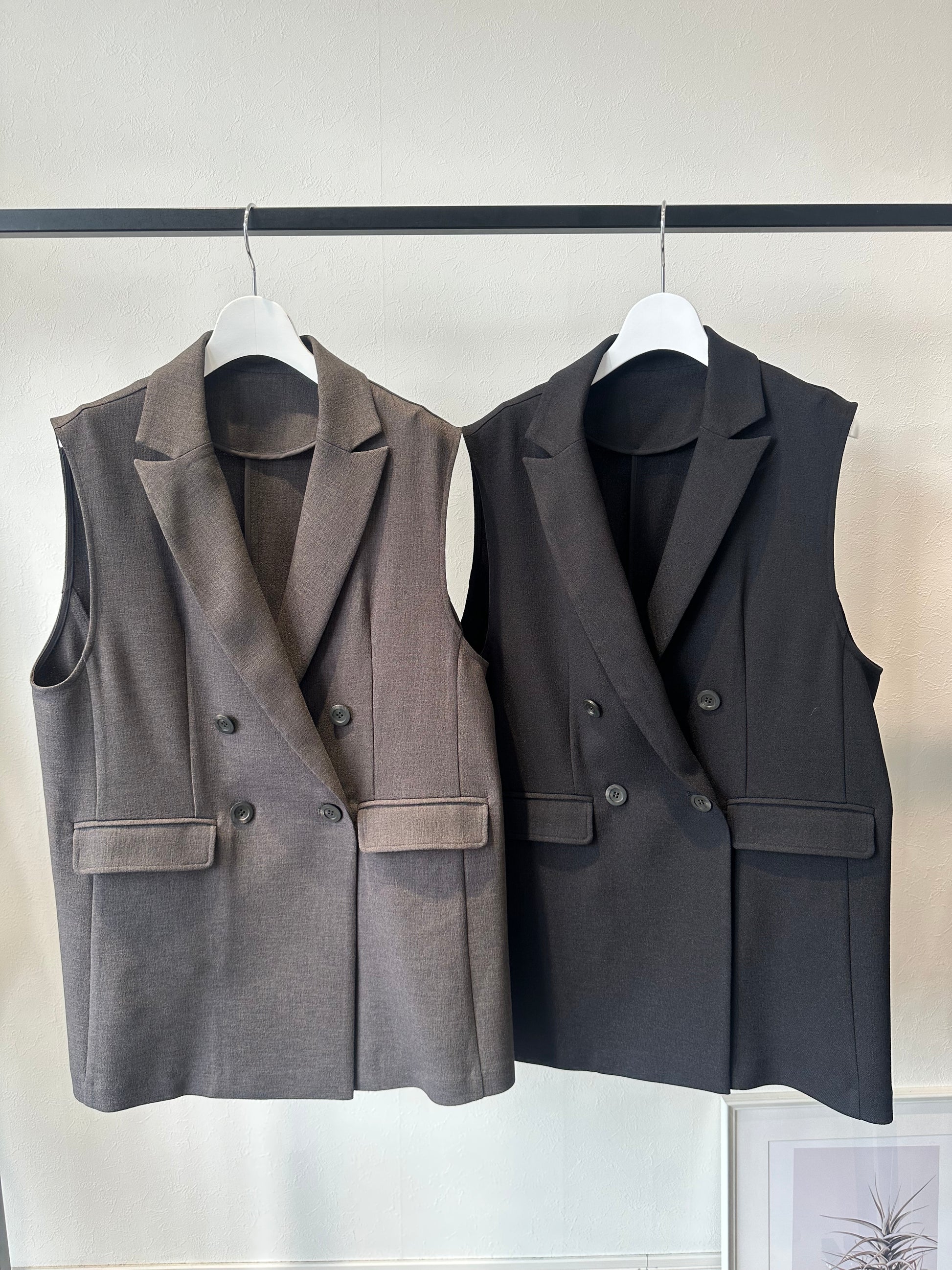 シンプルながらも存在感のある、ベーシックなダブルボタンベスト。